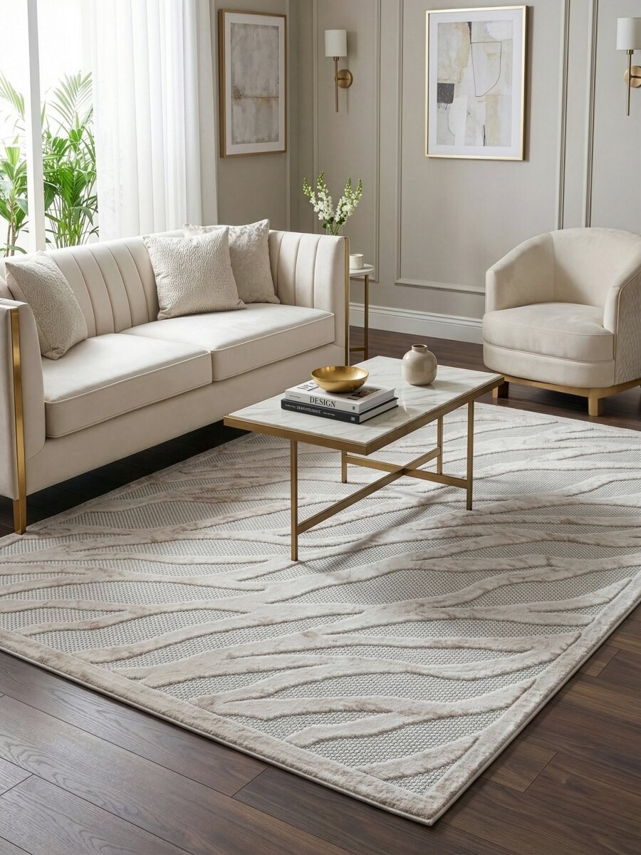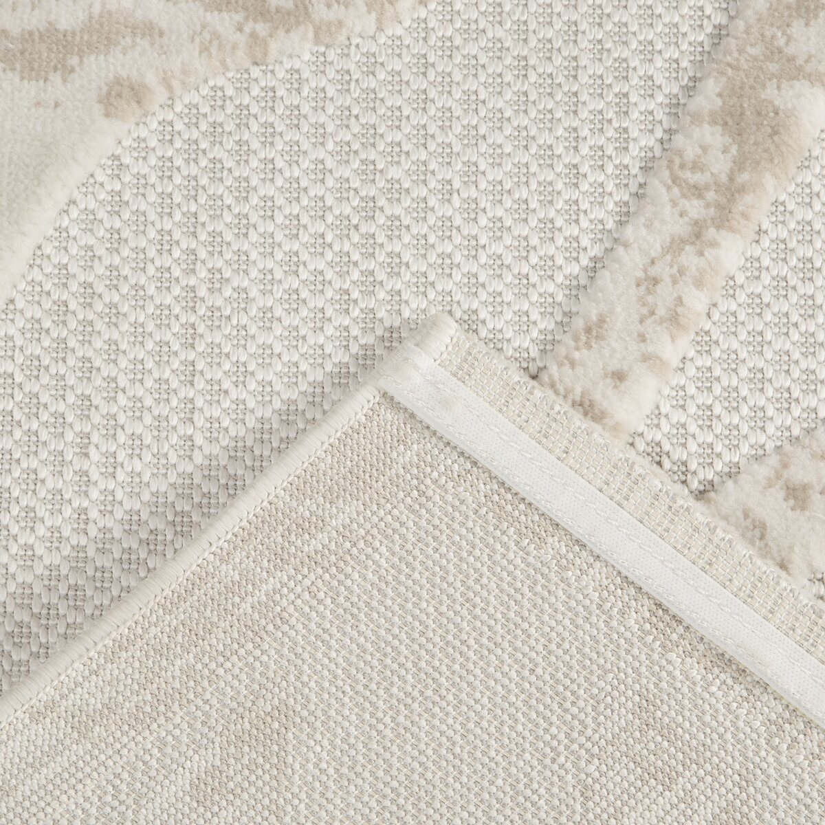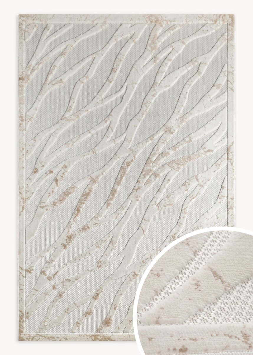 Dywan Venus to doskonałe połączenie nowoczesnego stylu i subtelnej kolorystyki. Geometryczny, abstrakcyjny wzór w odcieniach kremu i jasnego beżu nadaje wnętrzu elegancji oraz harmonii, idealnie wpisując się w aktualne trendy aranżacyjne.