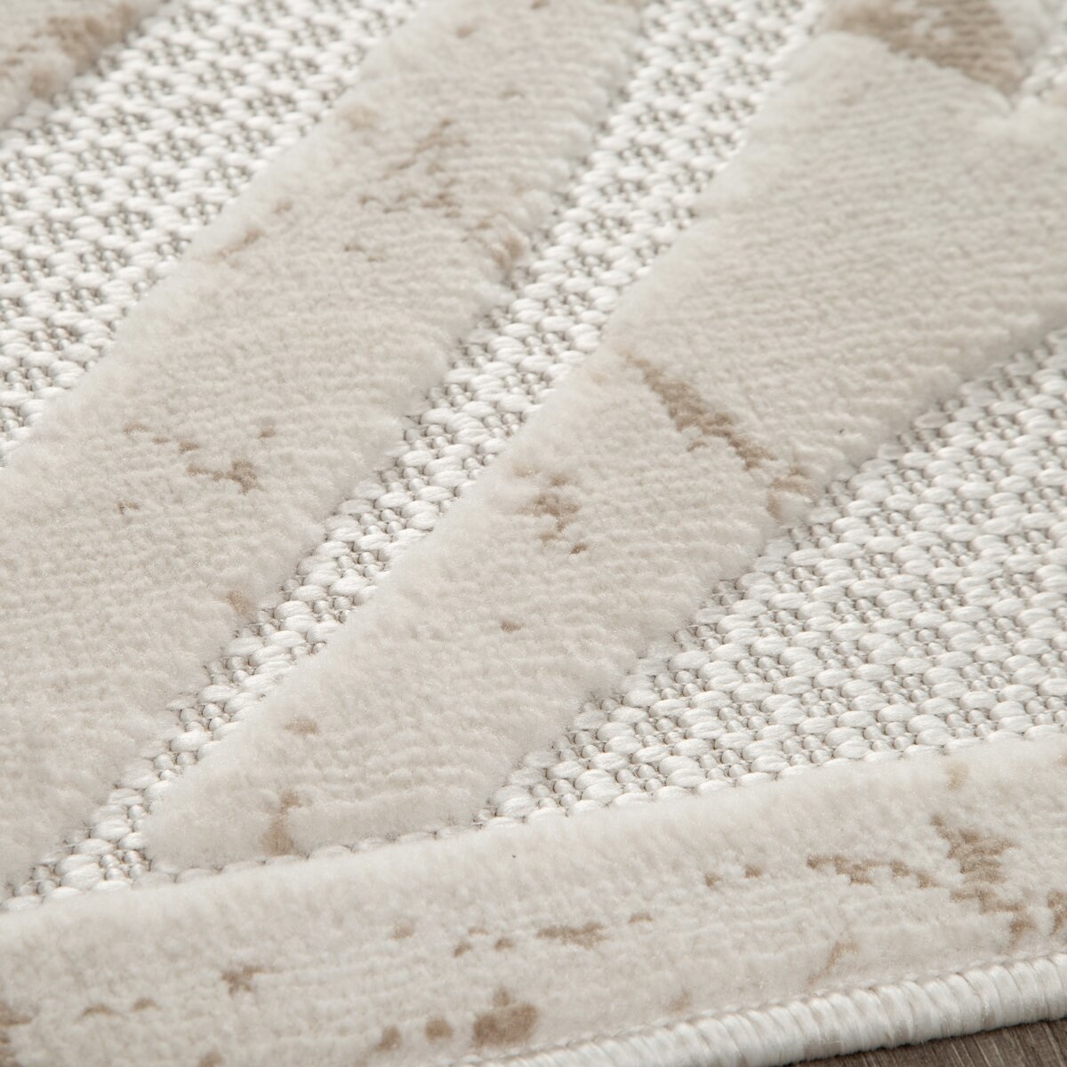 Dywan Venus to doskonałe połączenie nowoczesnego stylu i subtelnej kolorystyki. Geometryczny, abstrakcyjny wzór w odcieniach kremu i jasnego beżu nadaje wnętrzu elegancji oraz harmonii, idealnie wpisując się w aktualne trendy aranżacyjne.