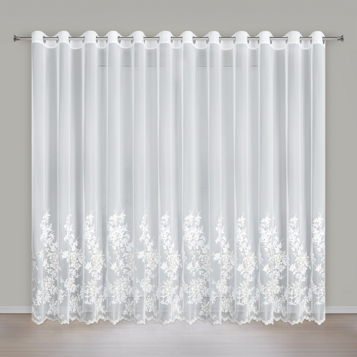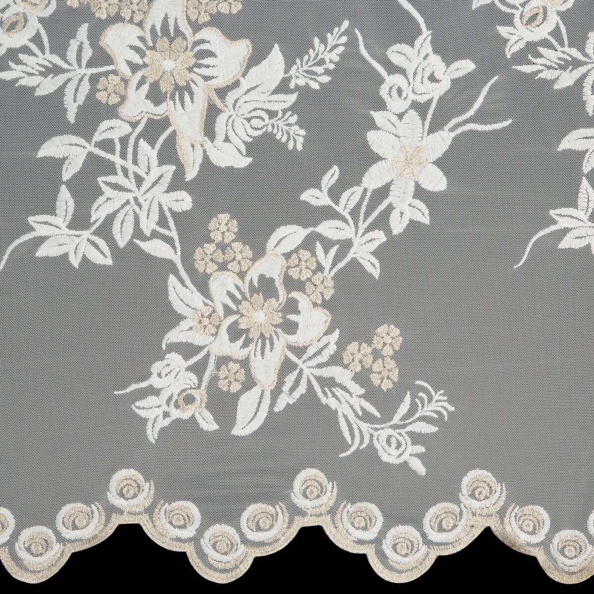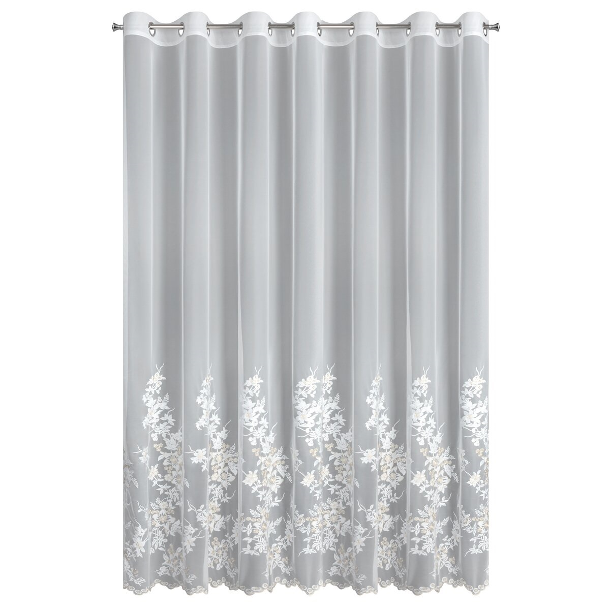 Dekoracyjny haftowany wzór dodaje firanie klasy i ponadczasowego charakteru. Zawieszenie na przelotkach (kołach) zapewnia łatwy montaż oraz estetyczne, równomierne układanie się materiału na karniszu. Kolorystyka w odcieniach kremowym / szampańskim idealnie komponuje się zarówno z nowoczesnymi, jak i klasycznymi aranżacjami wnętrz.
