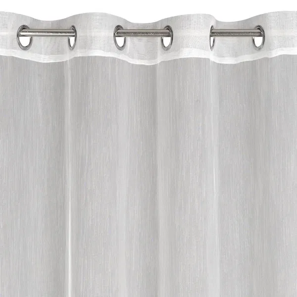 Gotowa firana NICEA to subtelna i elegancka dekoracja okienna, która zachwyca śnieżnobiałym kolorem i delikatnym połyskiem. Tkanina o strukturze drobnego „deszczyku” subtelnie rozprasza światło, zapewniając prywatność i przytulną atmosferę bez całkowitego zaciemnienia wnętrza.
