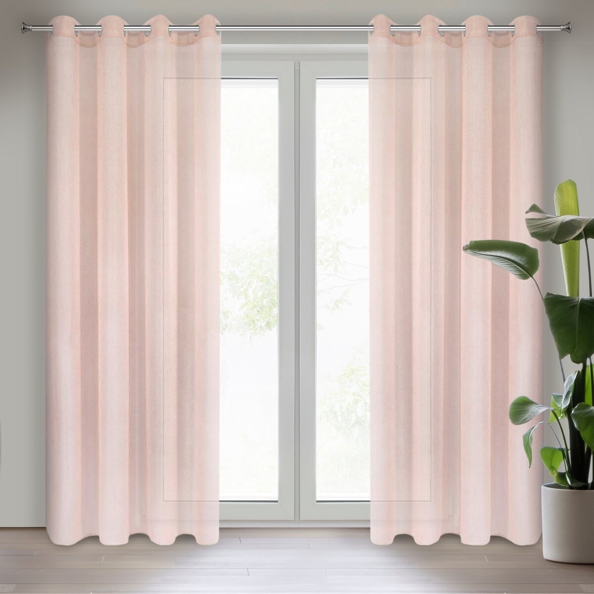 Firana gotowa Rebecca 140x250 różowa na przelotkach