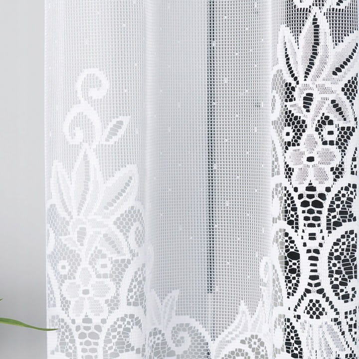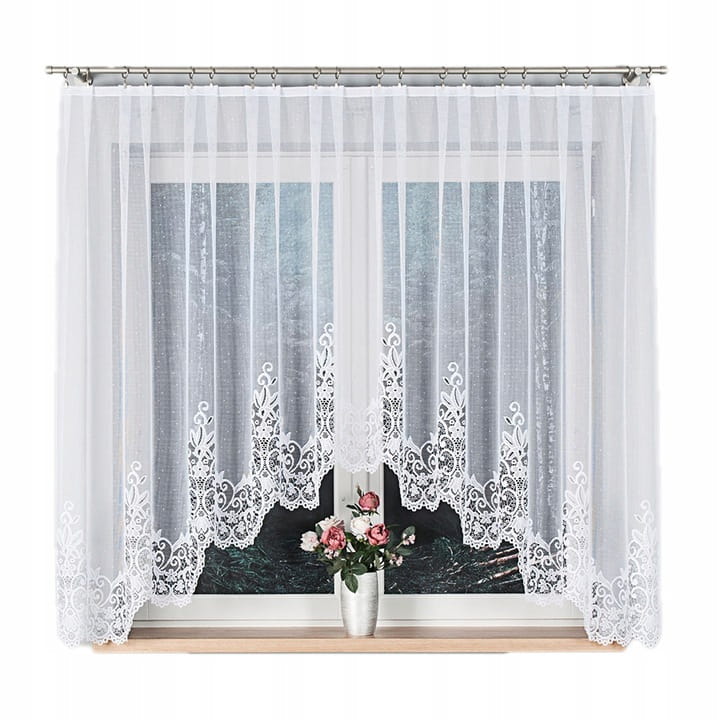 Klasyczny wzór firany pasuje do każdego pomieszczenia kuchni, sypialni, salonu czy jadalni.