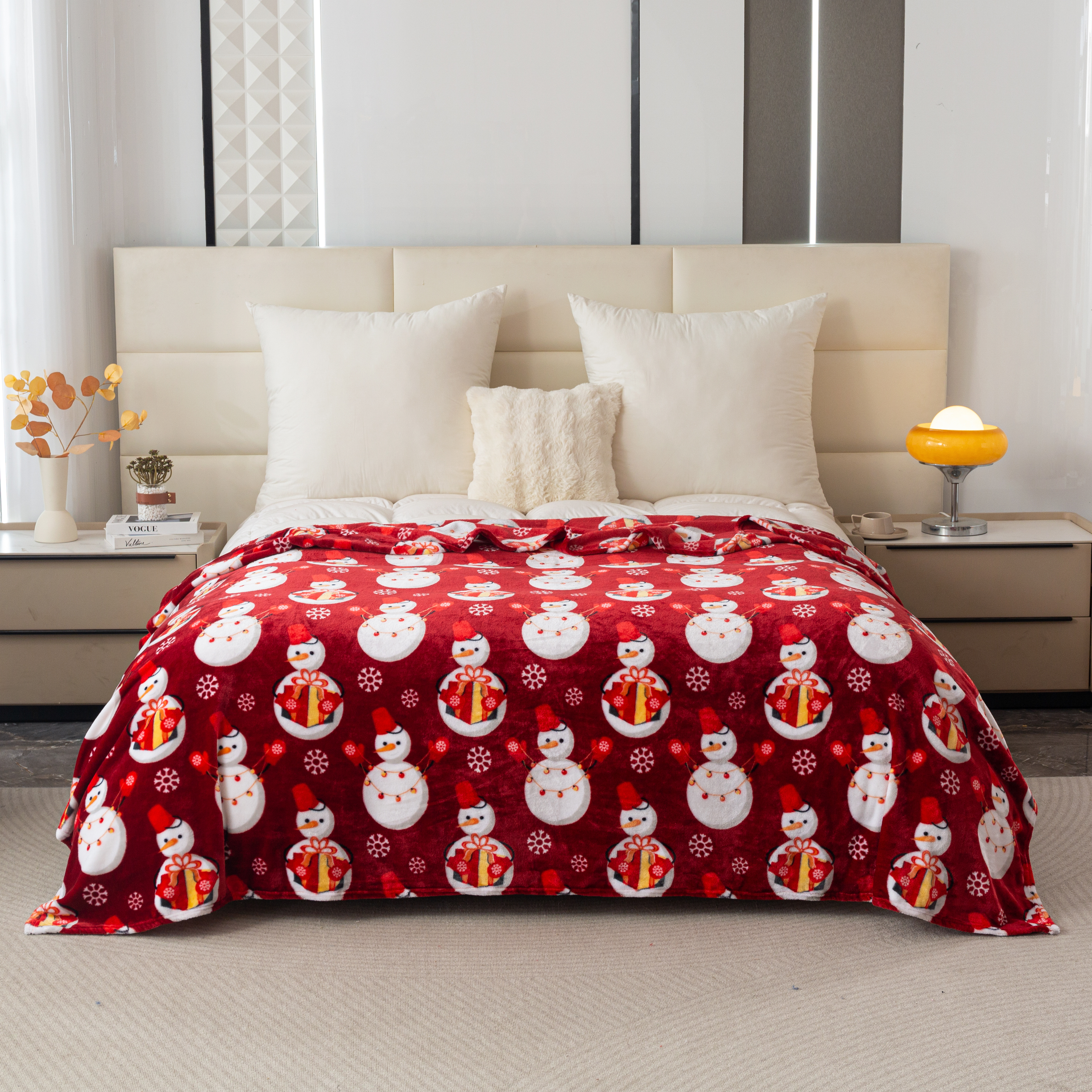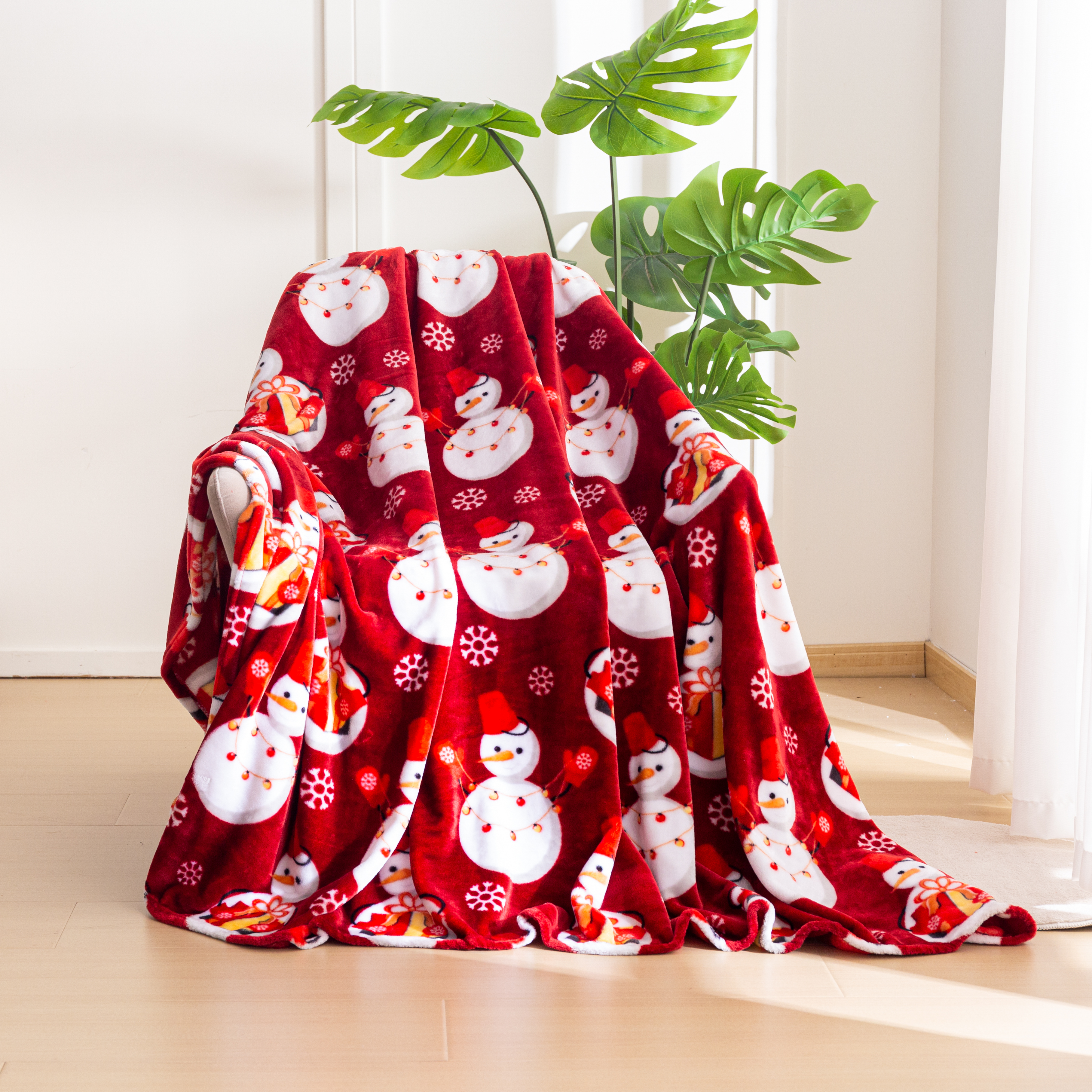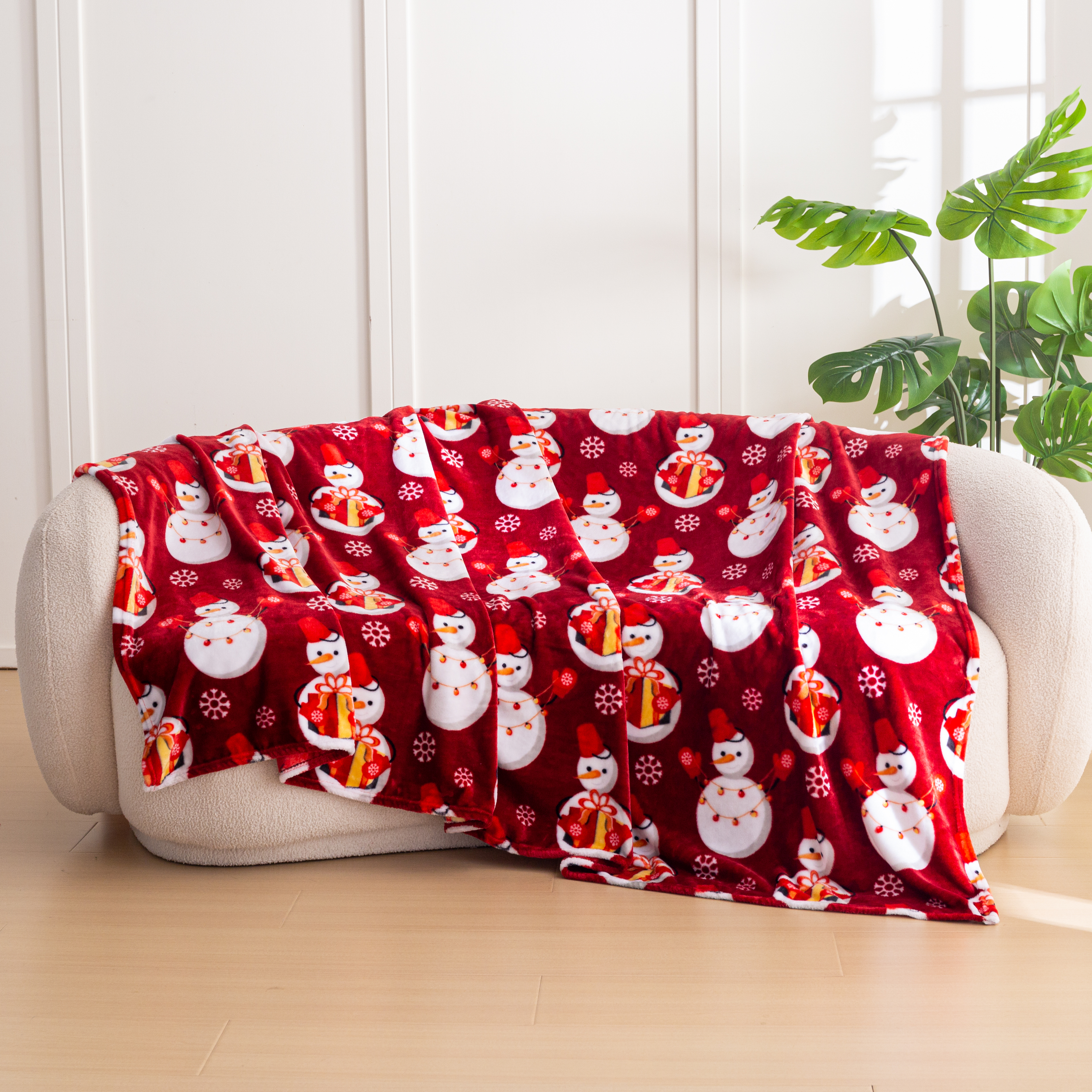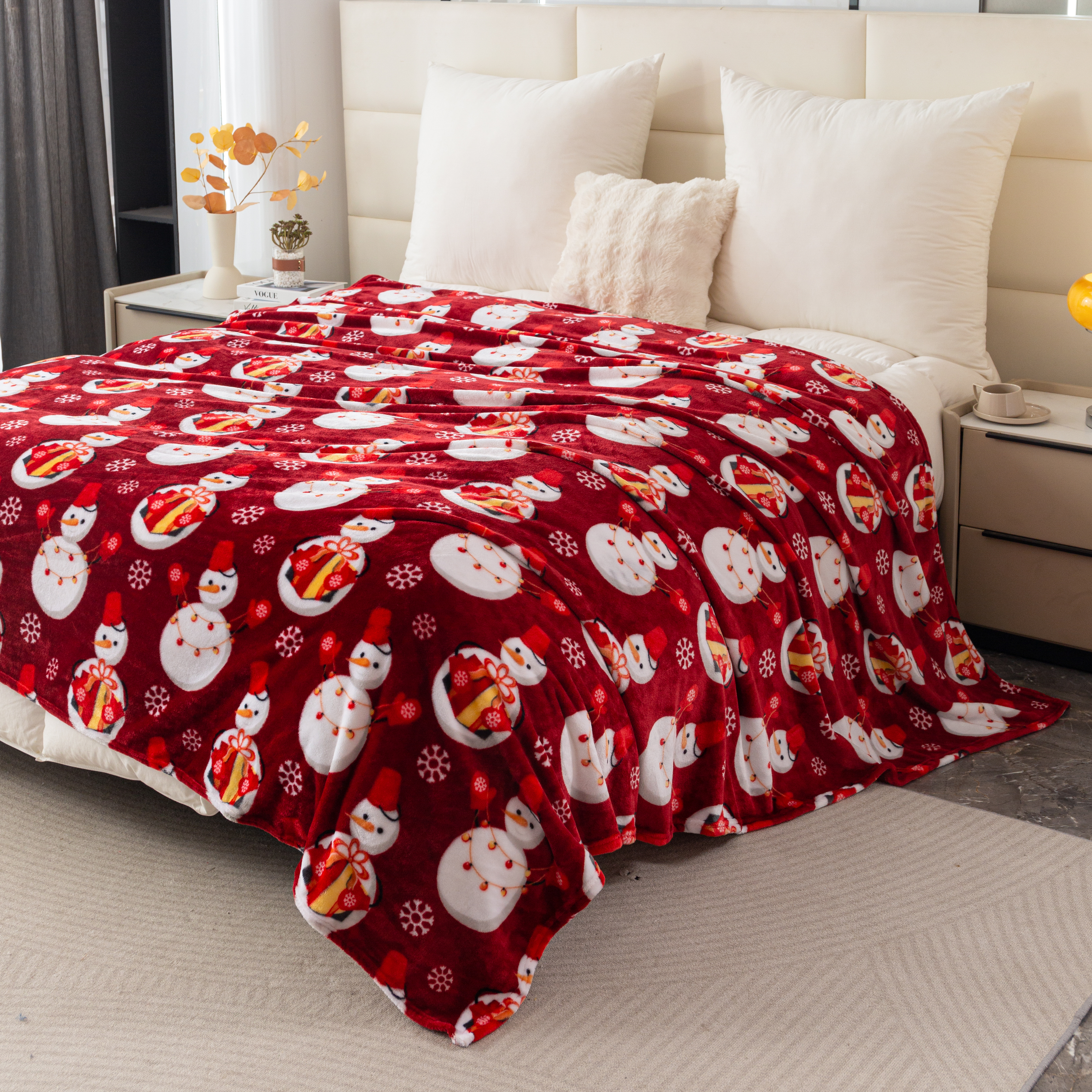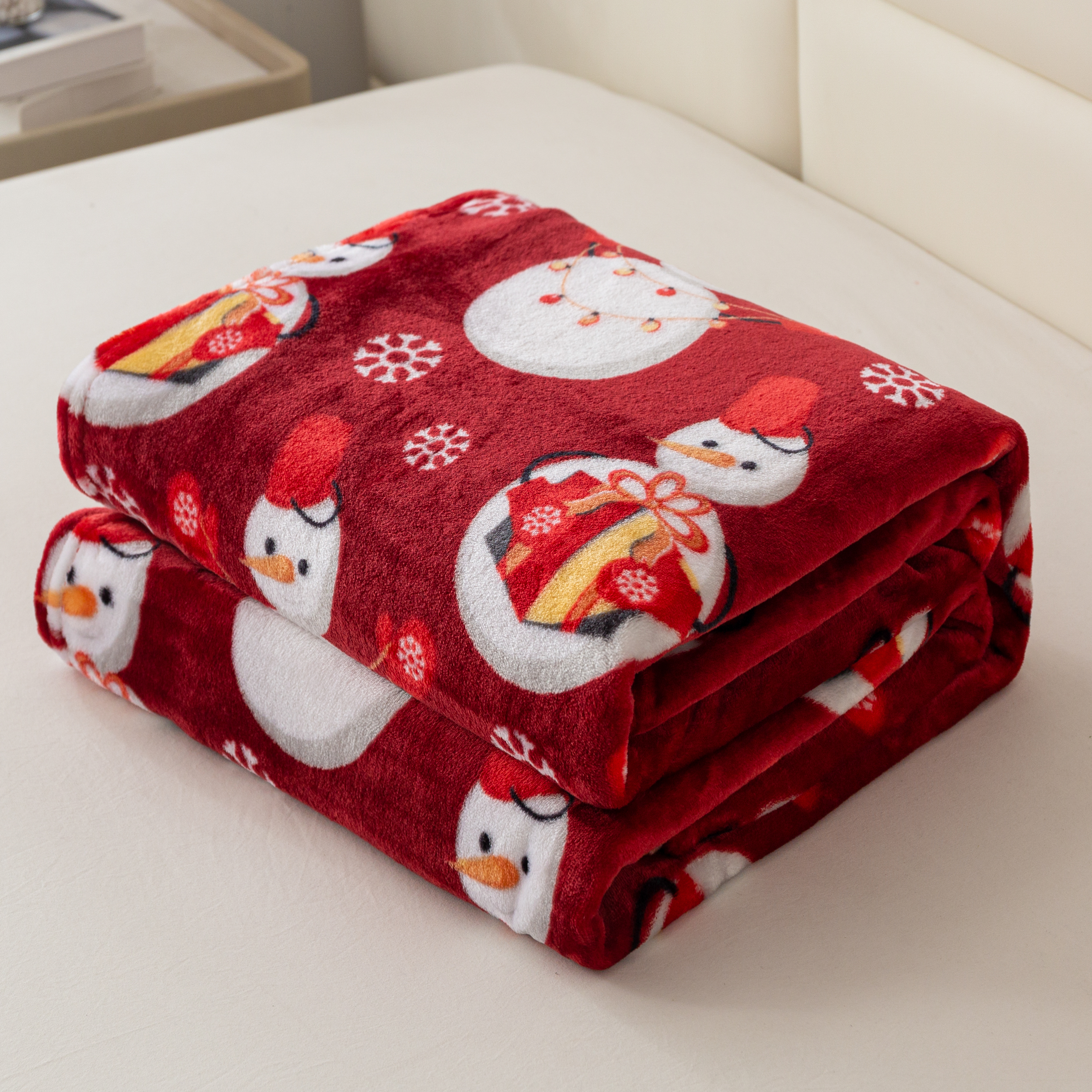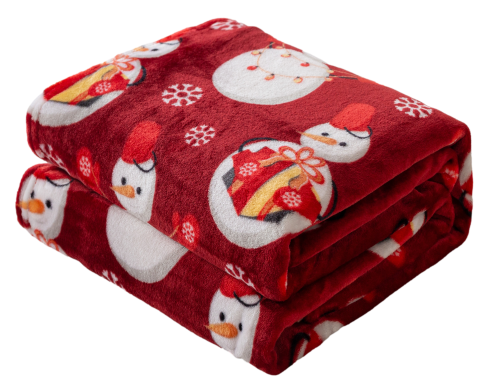 Koc 160x200 Świąteczny Dekoracyjny Bałwanki Świąteczne Czerwony