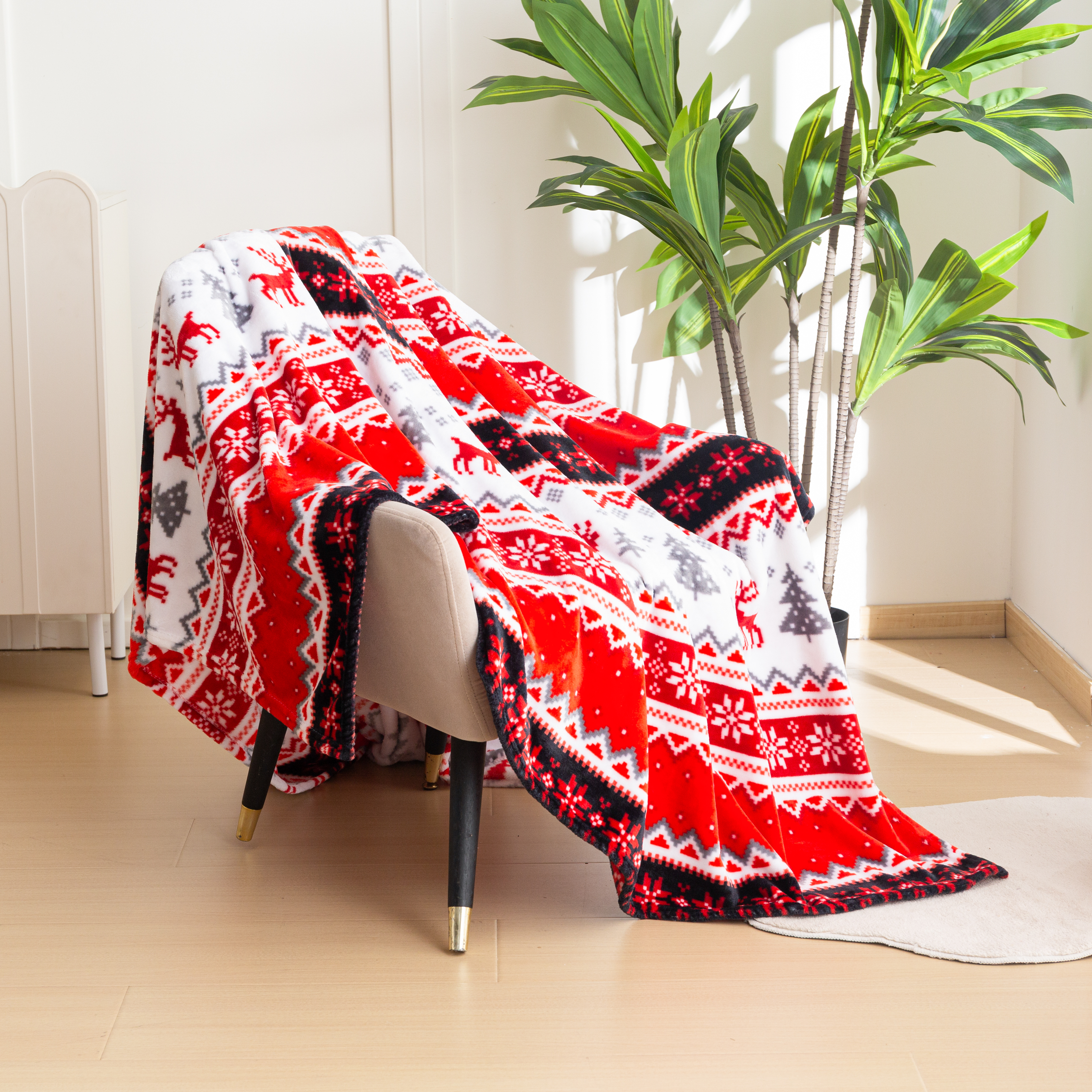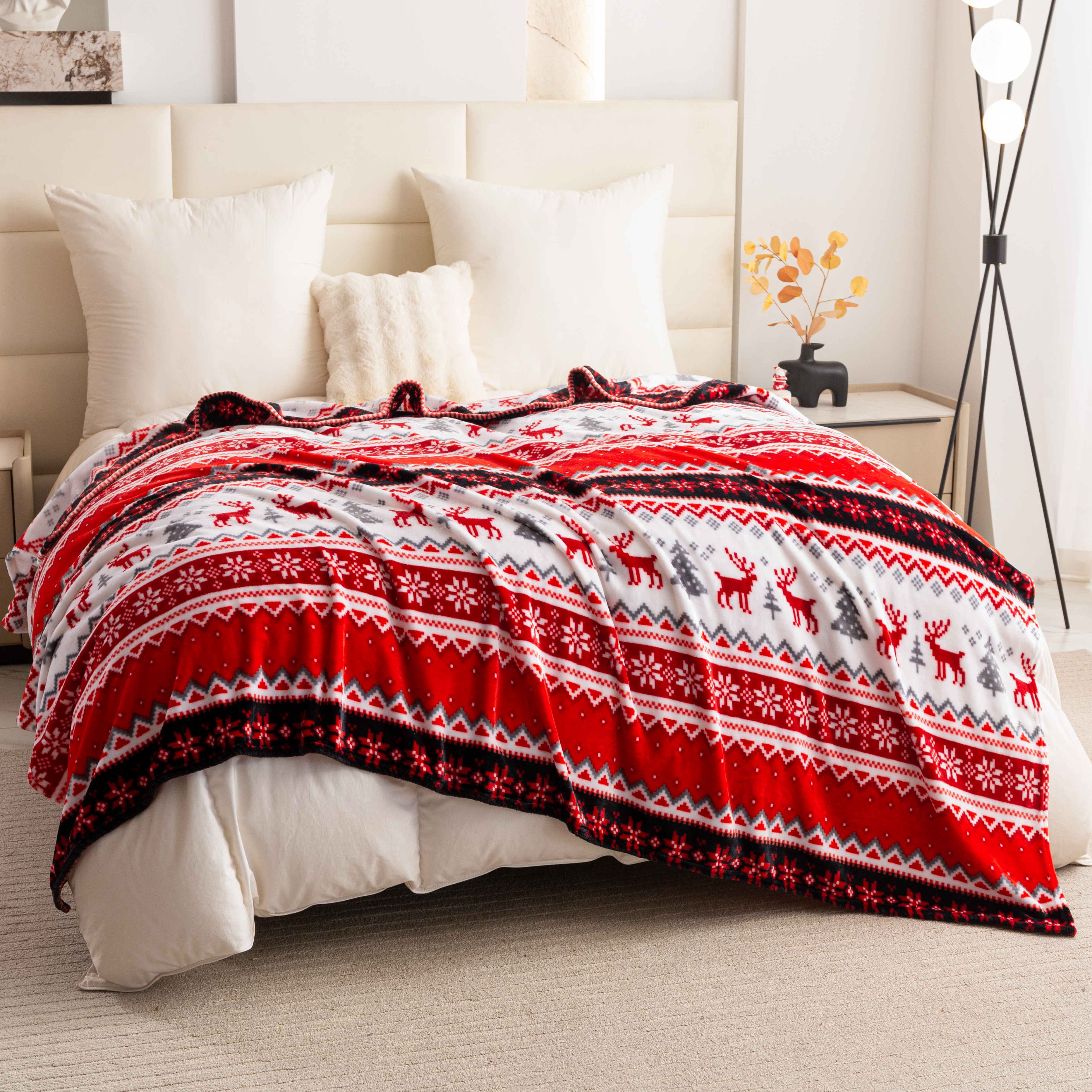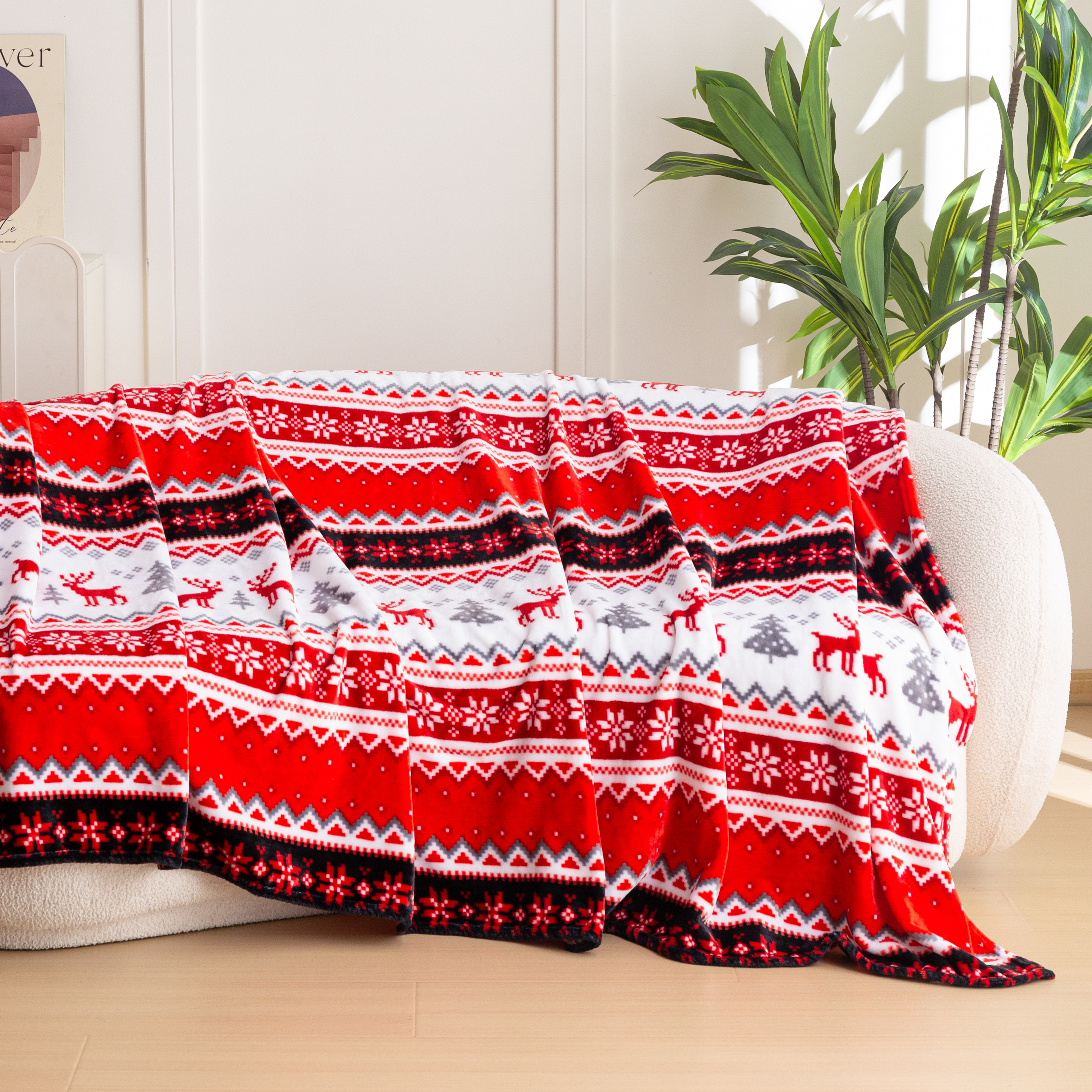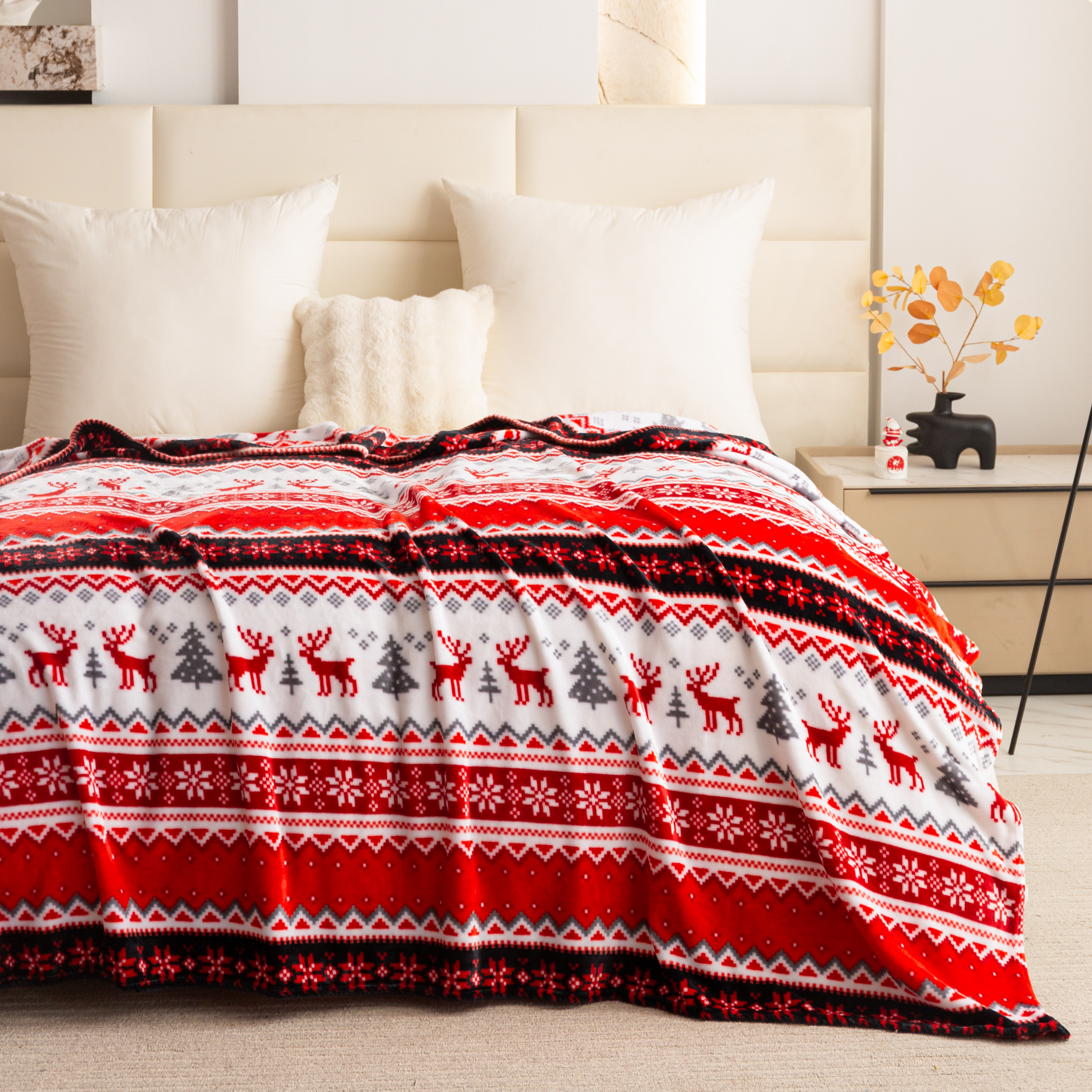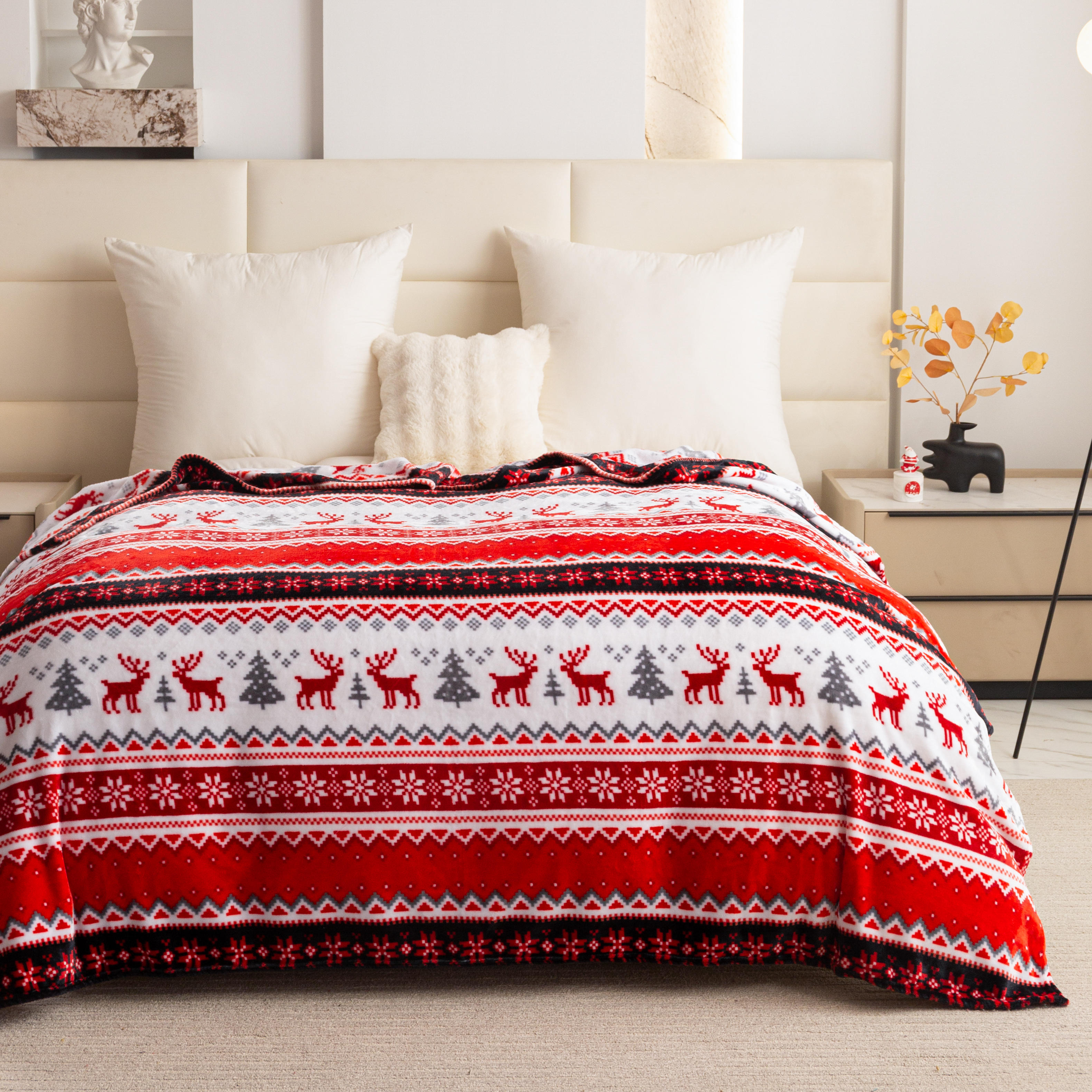 Koc 150x200 Świąteczny Dekoracyjny Renifery Gwiazdki Świąteczne