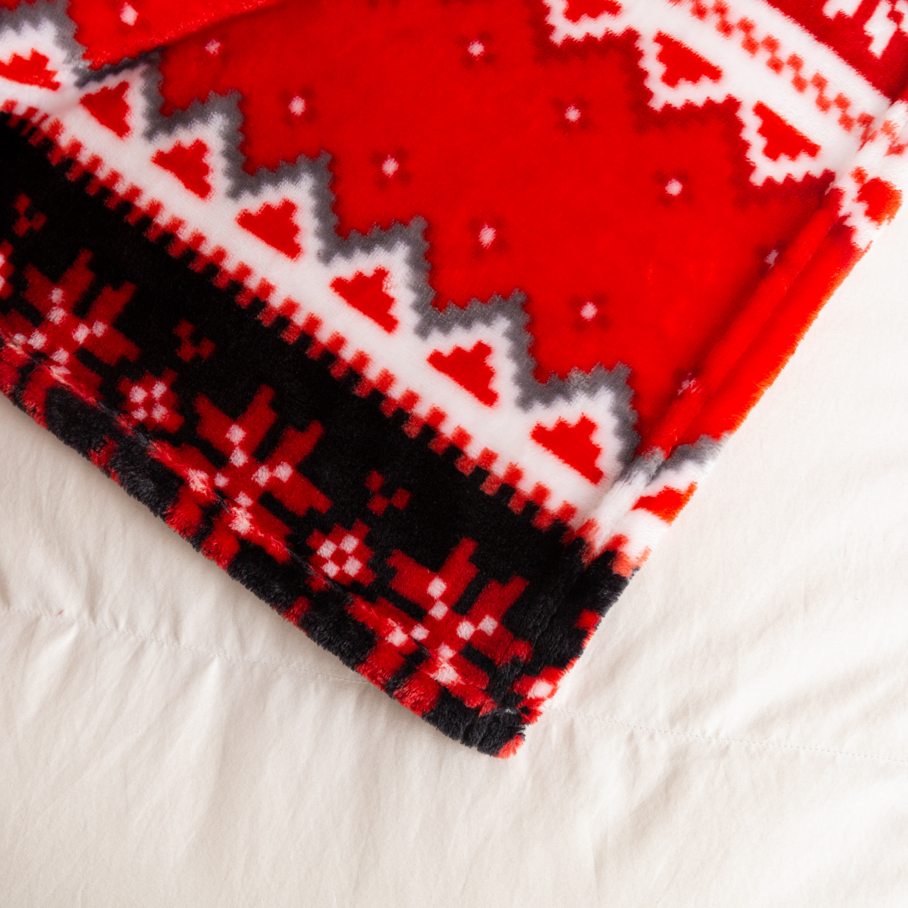 Koc 160x200 Świąteczny Dekoracyjny Renifery Gwiazdki Świąteczne Czerwony