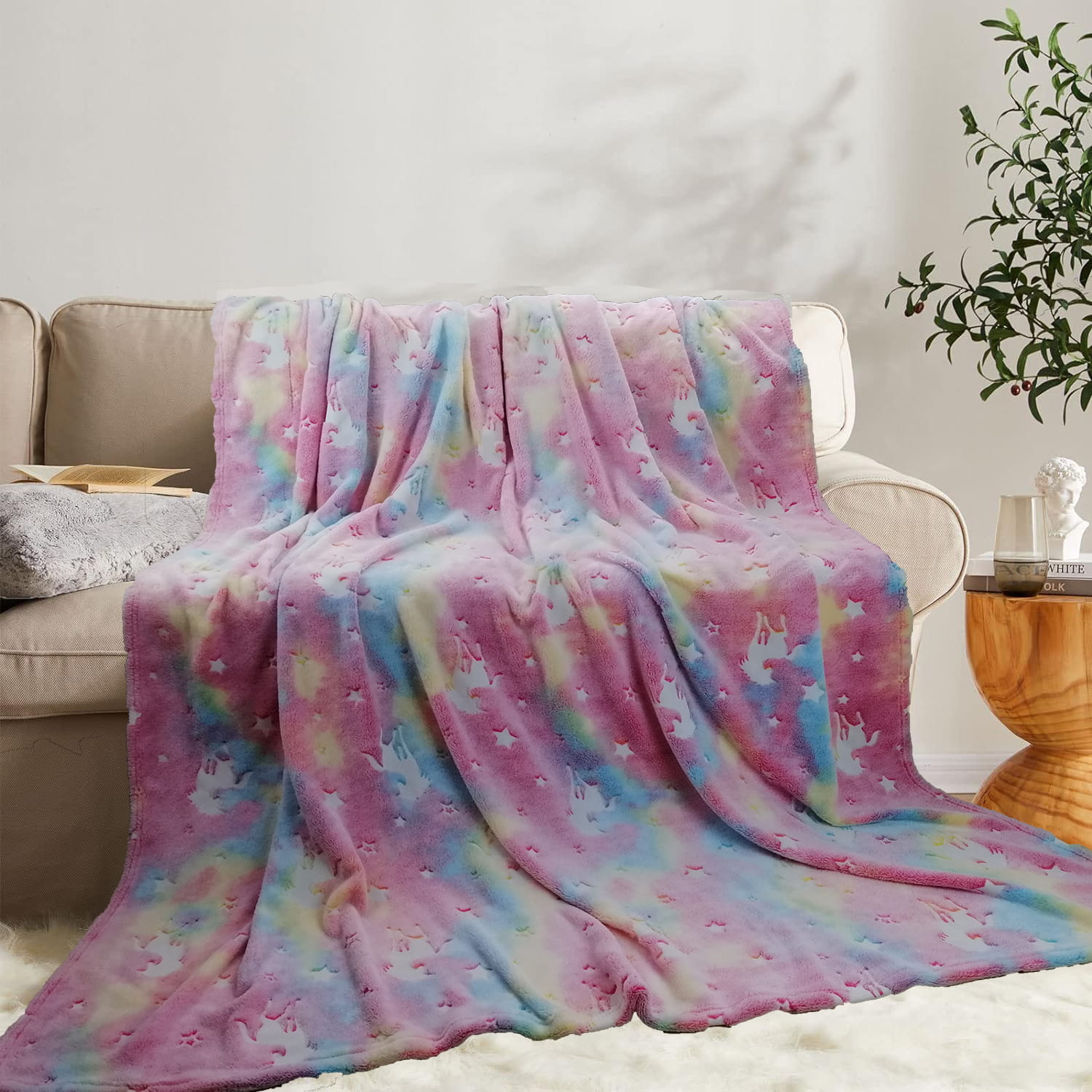 W ciągu dnia prezentuje się jak każdy inny kocyk, ale gdy zapadnie zmrok, jego magiczne właściwości wychodzą na światło dzienne – dosłownie! Rozświetla przestrzeń delikatnym, zachwycającym blaskiem, wprowadzając do pokoju niezwykłą aurę.