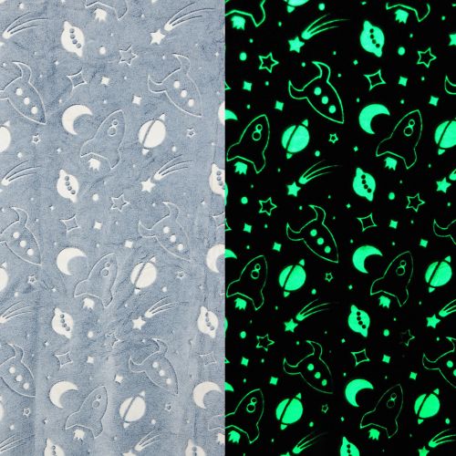 Koc Świecący w ciemności 150x200 Rakiety na Szarym Tle Fluo