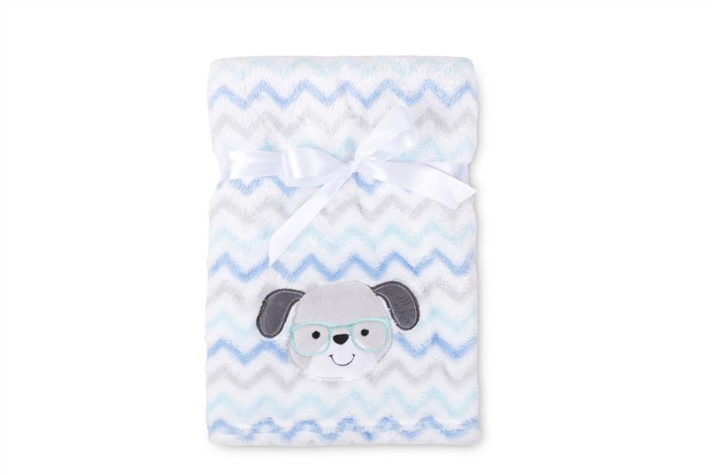 Kocyk RICCO z mikrowłókna, drukowany z haftem - aplikacją (piesek) pakowany na wieszaku, rozm. 75x100
