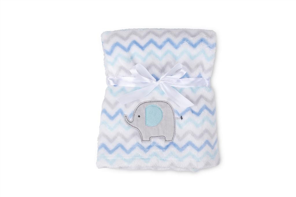 Kocyk RICCO z mikrowłókna, drukowany z haftem - aplikacją (słonik) pakowany na wieszaku, rozm. 75x100