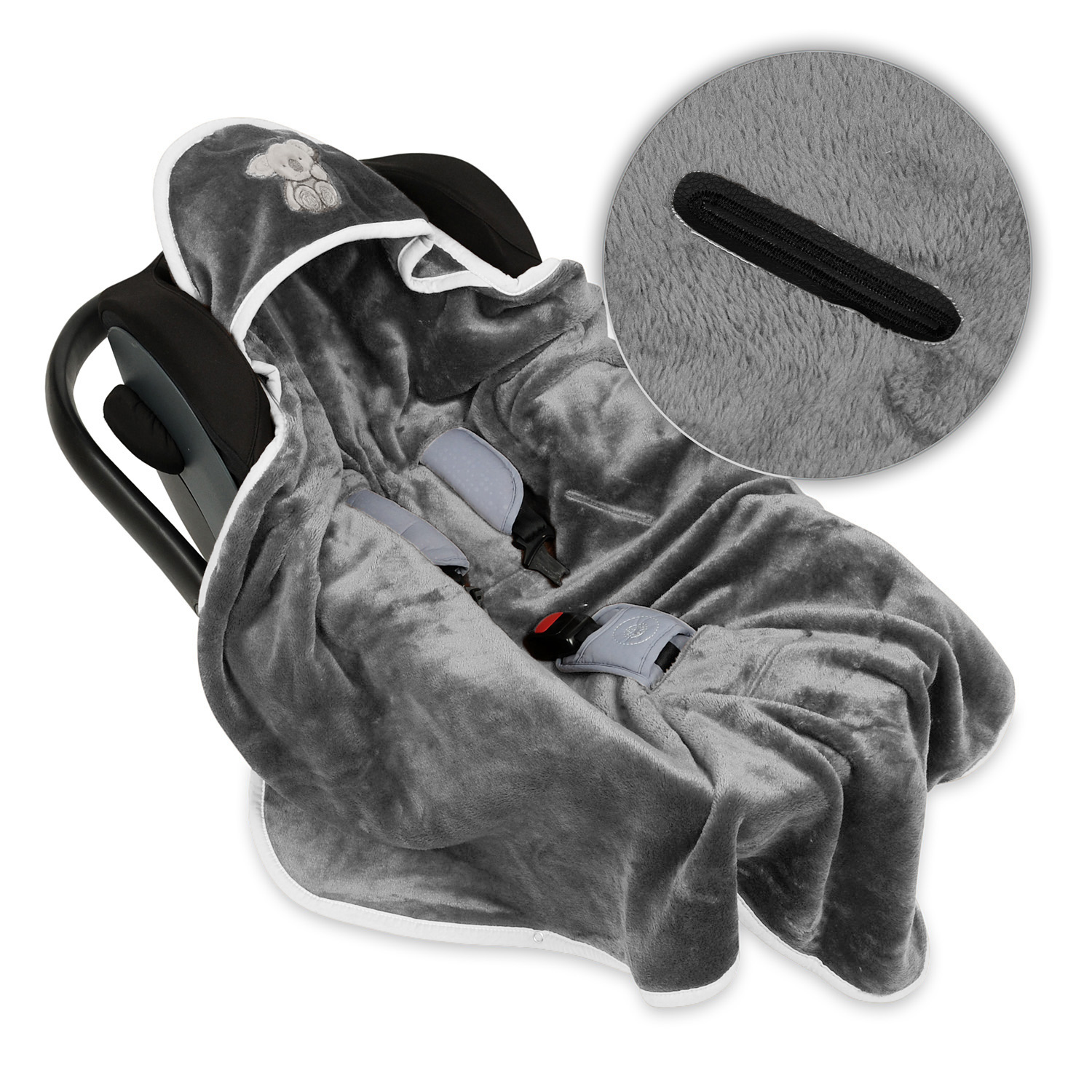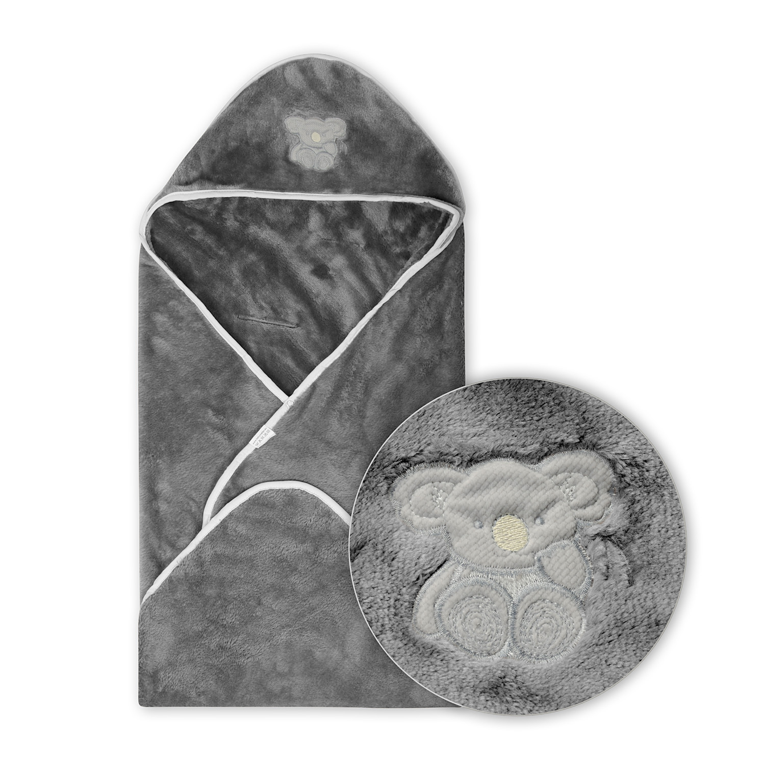Kocyk z mikrofazy z kapturkiem „Koala” – do fotelika samochodowego, 95x95 cm