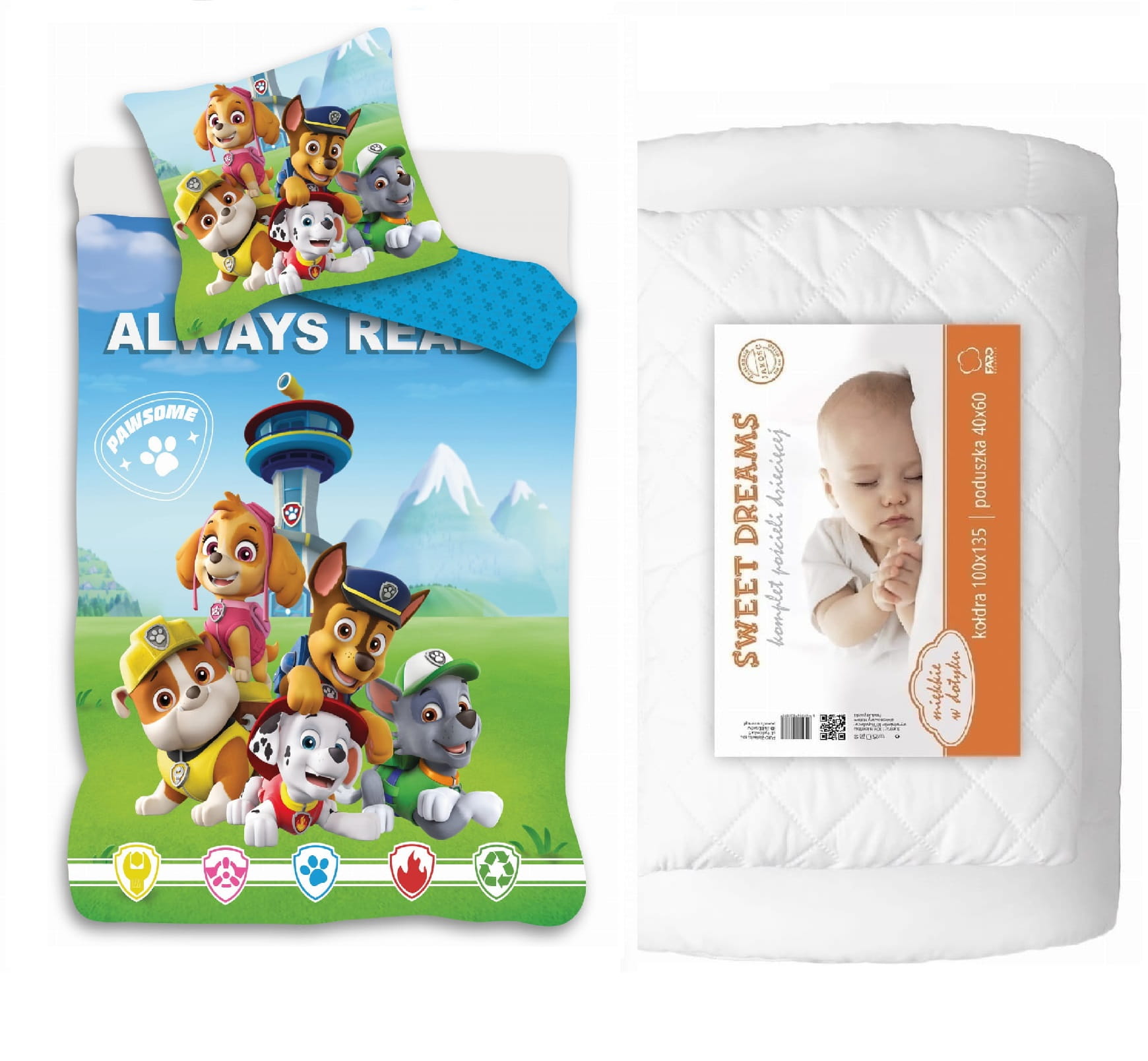 Pościel niemowlęca Psi Patrol 100x135 + 40x60 cm – komfort i radość snu dla Twojego malucha!