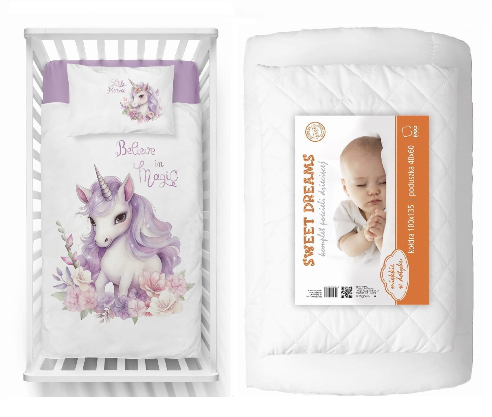 Komplet do łóżeczka 90x120 Kołdra + Pościel Jednorożec Unicorn