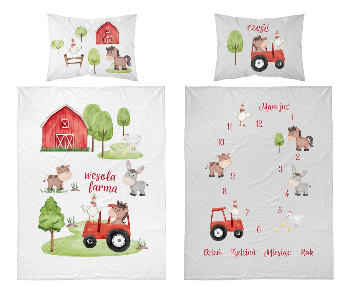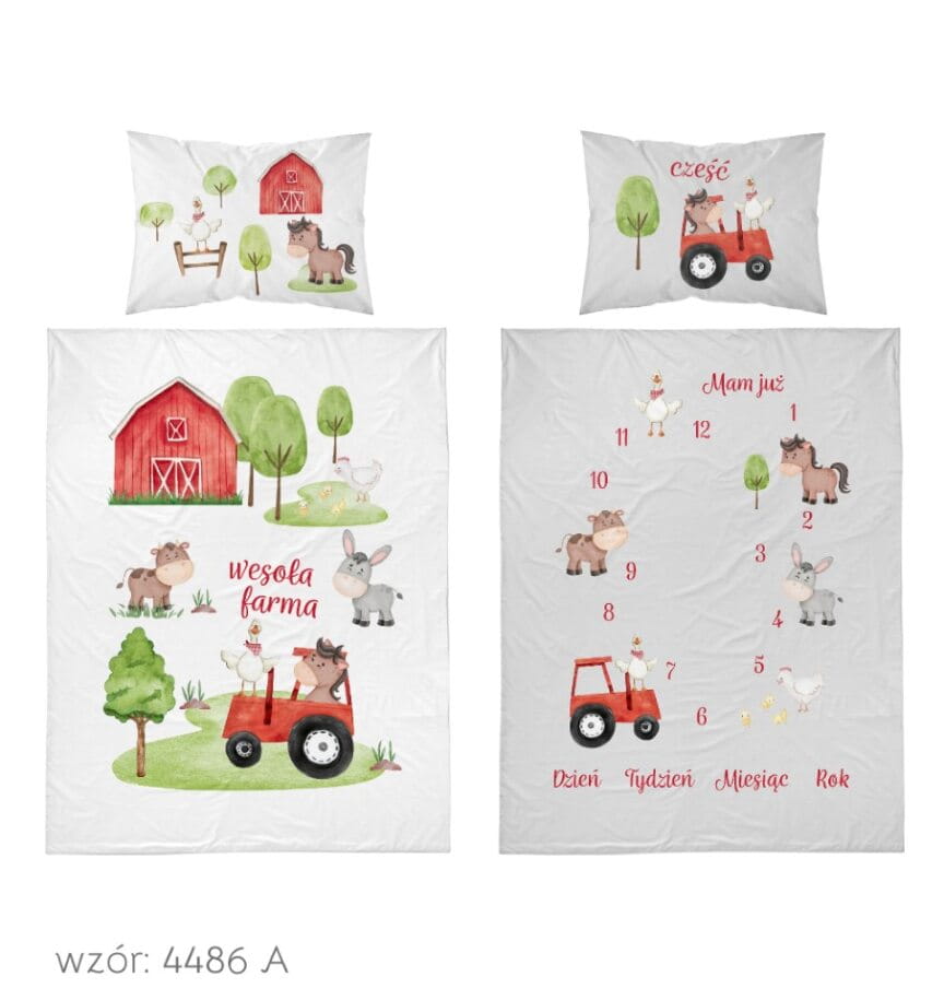 Komplet do łóżeczka 90x120 Kołdra + Pościel Traktorek Czerwony Wesoła Farma