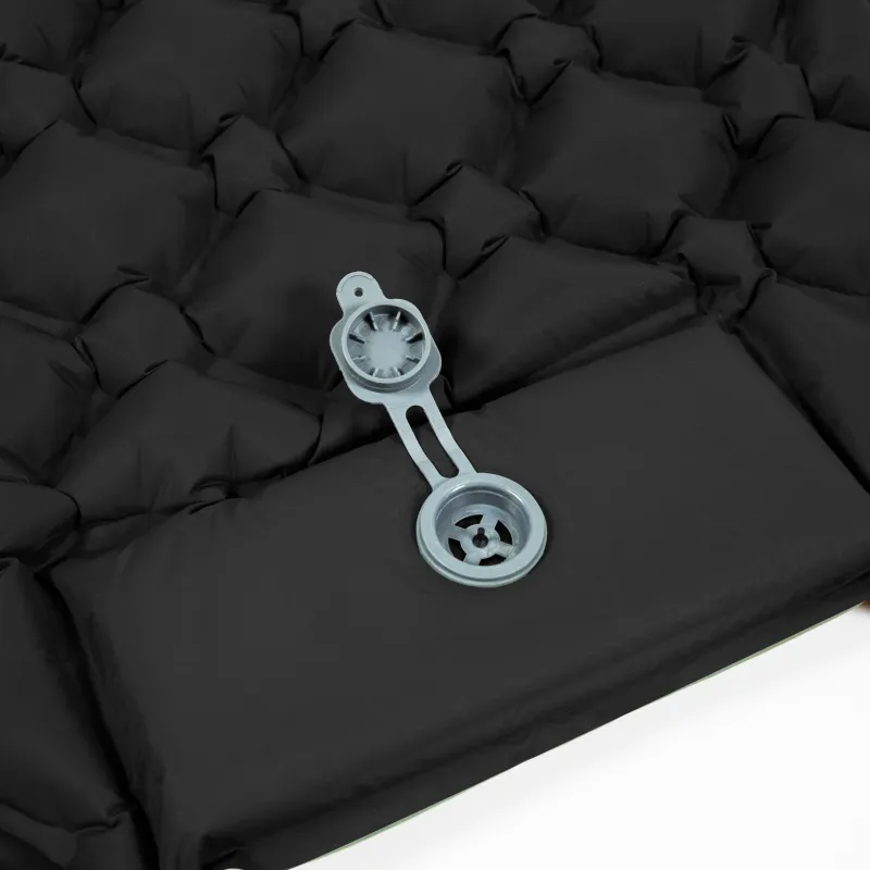 Materac dmuchany ultralight napompujesz za pomocą wbudowanej pompki, naciskając ją. Możesz skorzystać też ze zwykłej pompki (niedołączonej do zestawu).