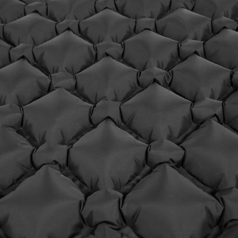 Materac dmuchany ze wbudowaną pompką został wykonany z wysokiej jakości, trwałego nylonowego materiału z domieszką TPU. Dzięki temu jest on nie tylko miły w dotyku, ale też odporny na wilgoć. Jego zaletą jest również bardzo dobra izolacja od zimnego podłoża. To sprawia, że matę samopompującą możesz bezpośrednio położyć na ziemi lub piachu.
