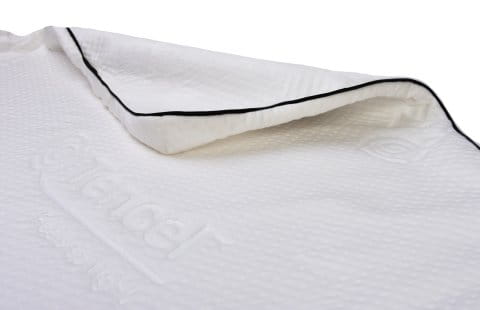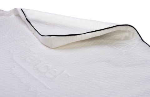 Dwustronny Pokrowiec z Zamkiem 360°: Materacyk posiada dwie strony, dostosowane do wieku dziecka. Jego dwuczęściowy pokrowiec z zamkiem 360° umożliwia wypranie jednej strony przy jednoczesnym używaniu drugiej. Pokrowiec wykonany jest z dzianiny żakardowej z efektem 3D z naturalnym futrem z alpaki oraz warstwą z dzianiny żakardowej typu tencel, zapobiegającą przemakaniu i podrażnieniom.