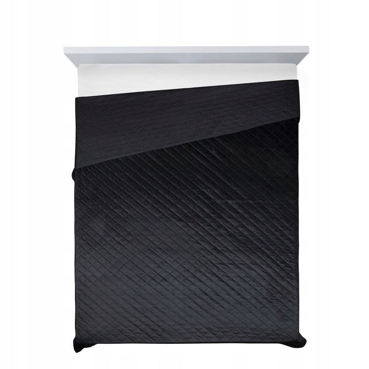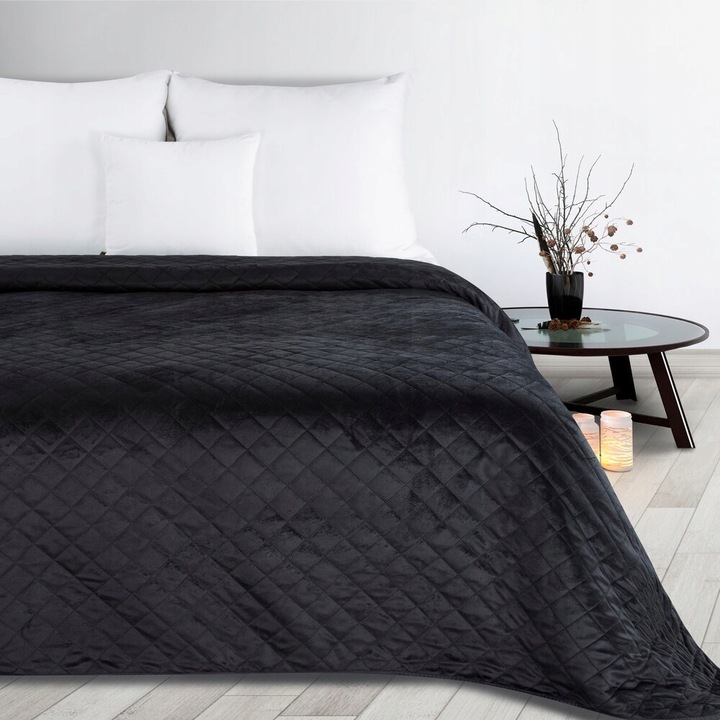 Narzuta dekoracyjna na łóżko LUIZ 5 – 220x240 cm, czarna, pikowana velvet