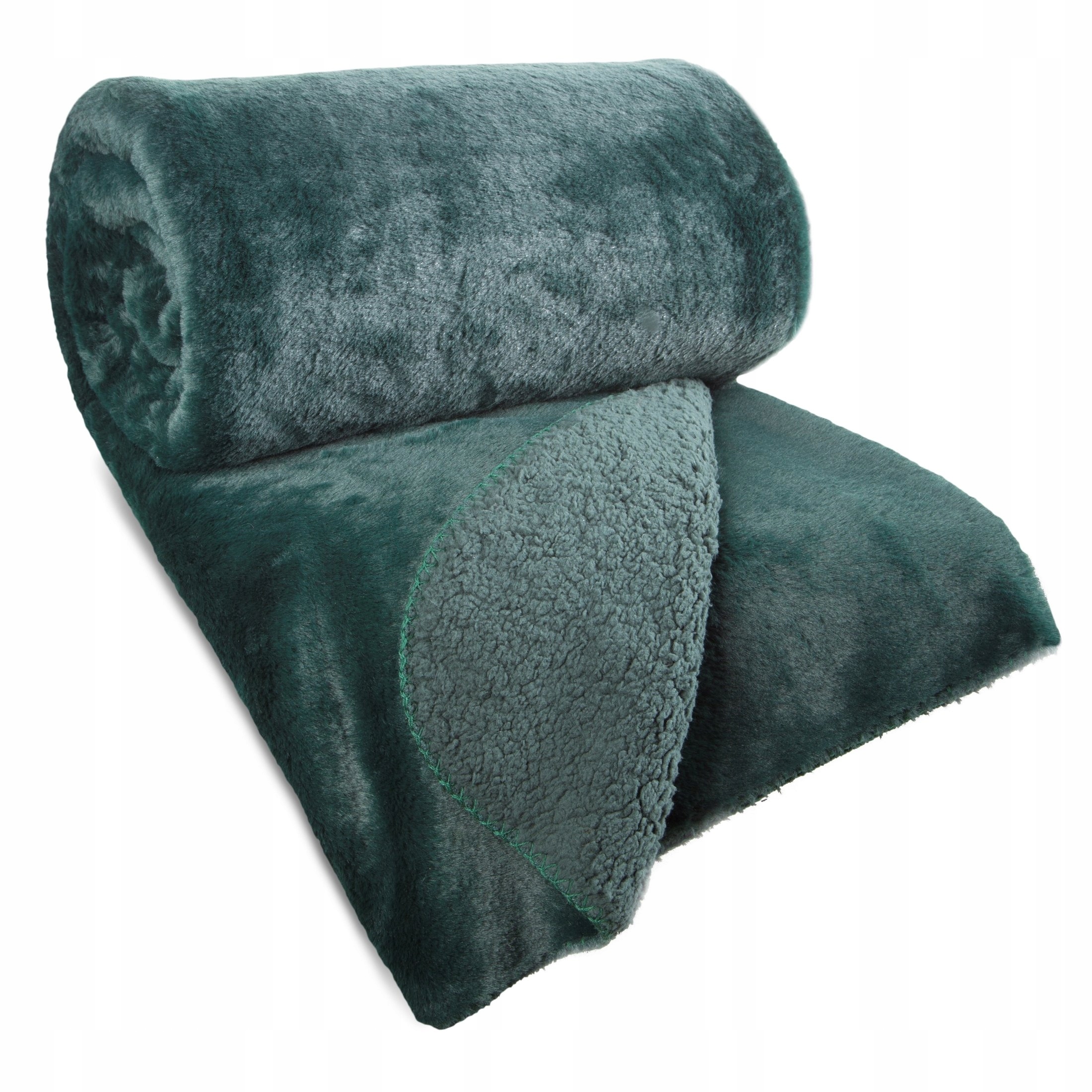 Dwustronna futrzana narzuta / gruby koc baranek Nina Ciemna Zieleń 220×240 cm – kolekcja Premium