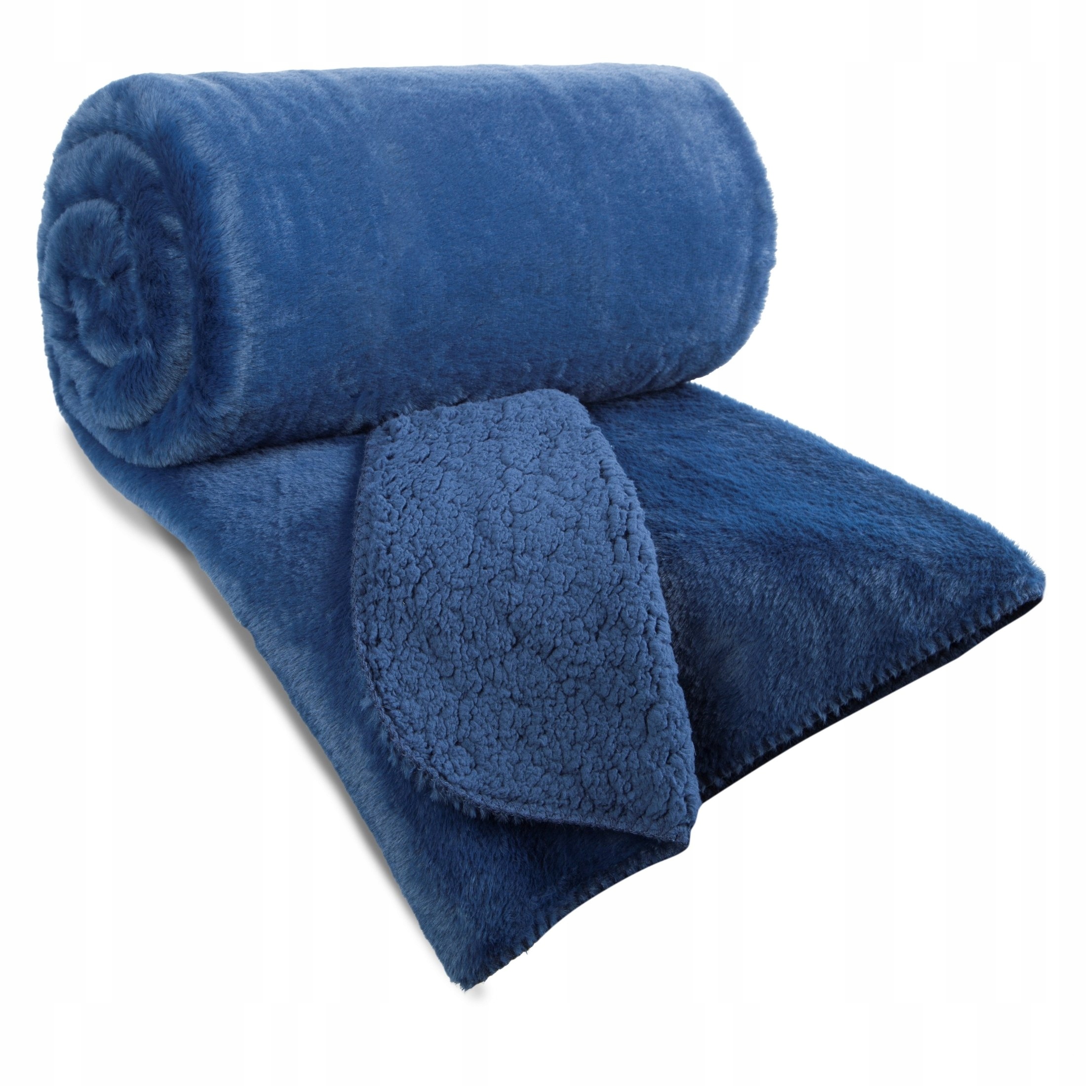 Dwustronna futrzana narzuta / gruby koc baranek Nina Niebieska 220×240 cm – kolekcja Premium