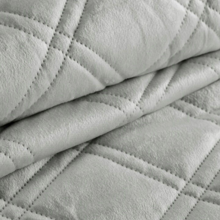 Narzuta dekoracyjna 220x240 Srebrna welwetowa geometryczne pikowanie