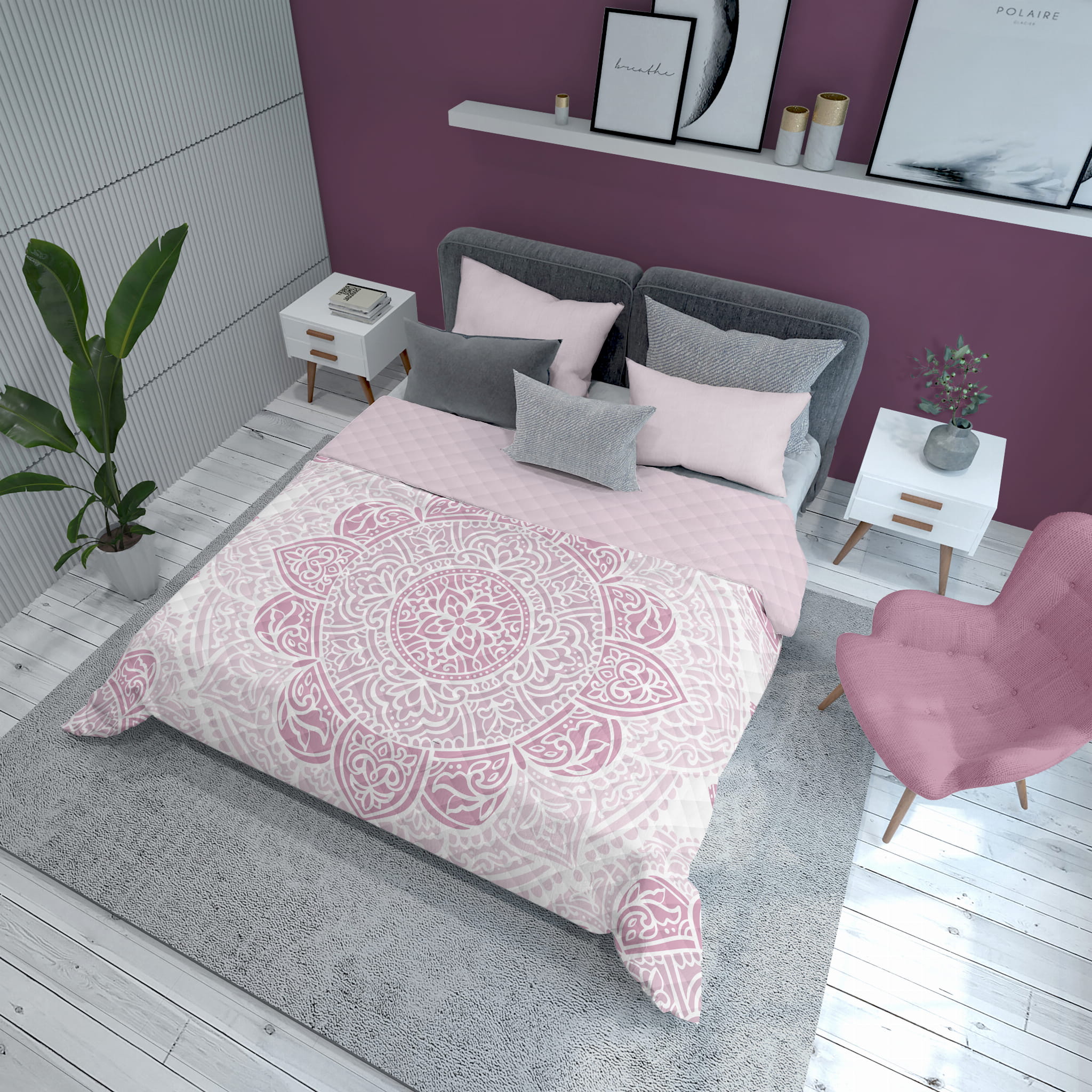 Narzuta została wykonana z matowego materiału przypominającego bawełnę, składającego się ze 100% poliestru. Posiada estetyczne pikowanie tworzone metodą zgrzewania hot press, które jest zdecydowanie solidniejsze od tradycyjnego zszywania. Jest gładka i przyjemna w dotyku, a do tego nie jest śliska.