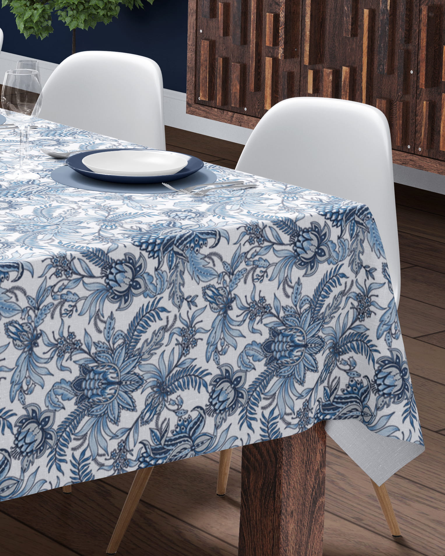 Obrus dekoracyjny 140x180 Panama Liście Niebieski