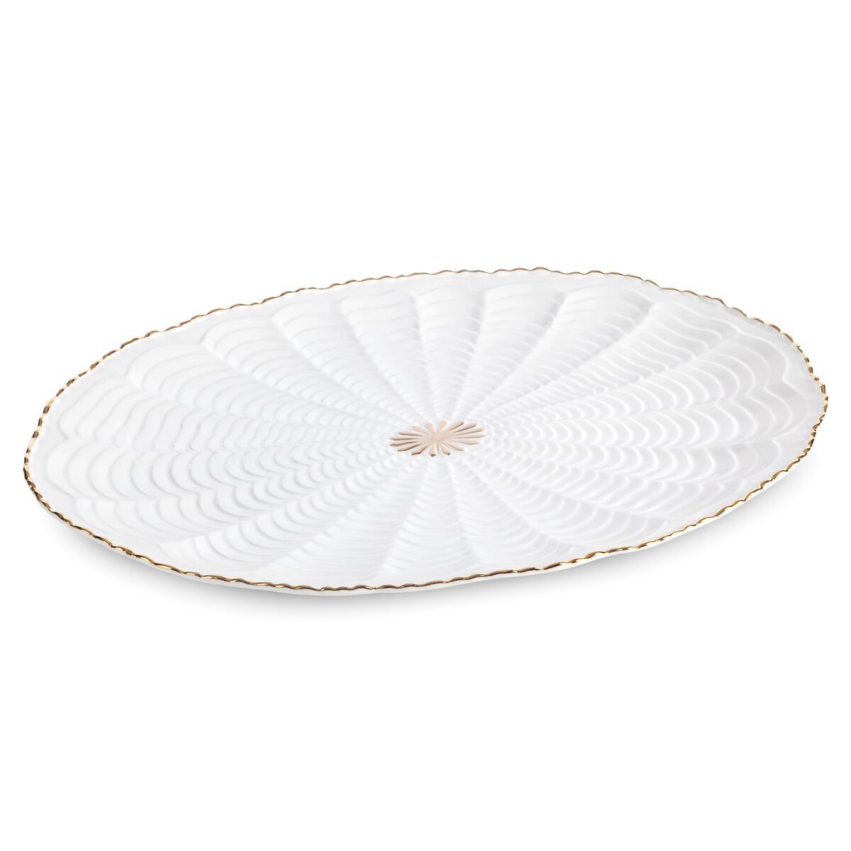 Patera Dekoracyjna GAYA 41 × 28 × 3 cm – kremowo-złota elegancja