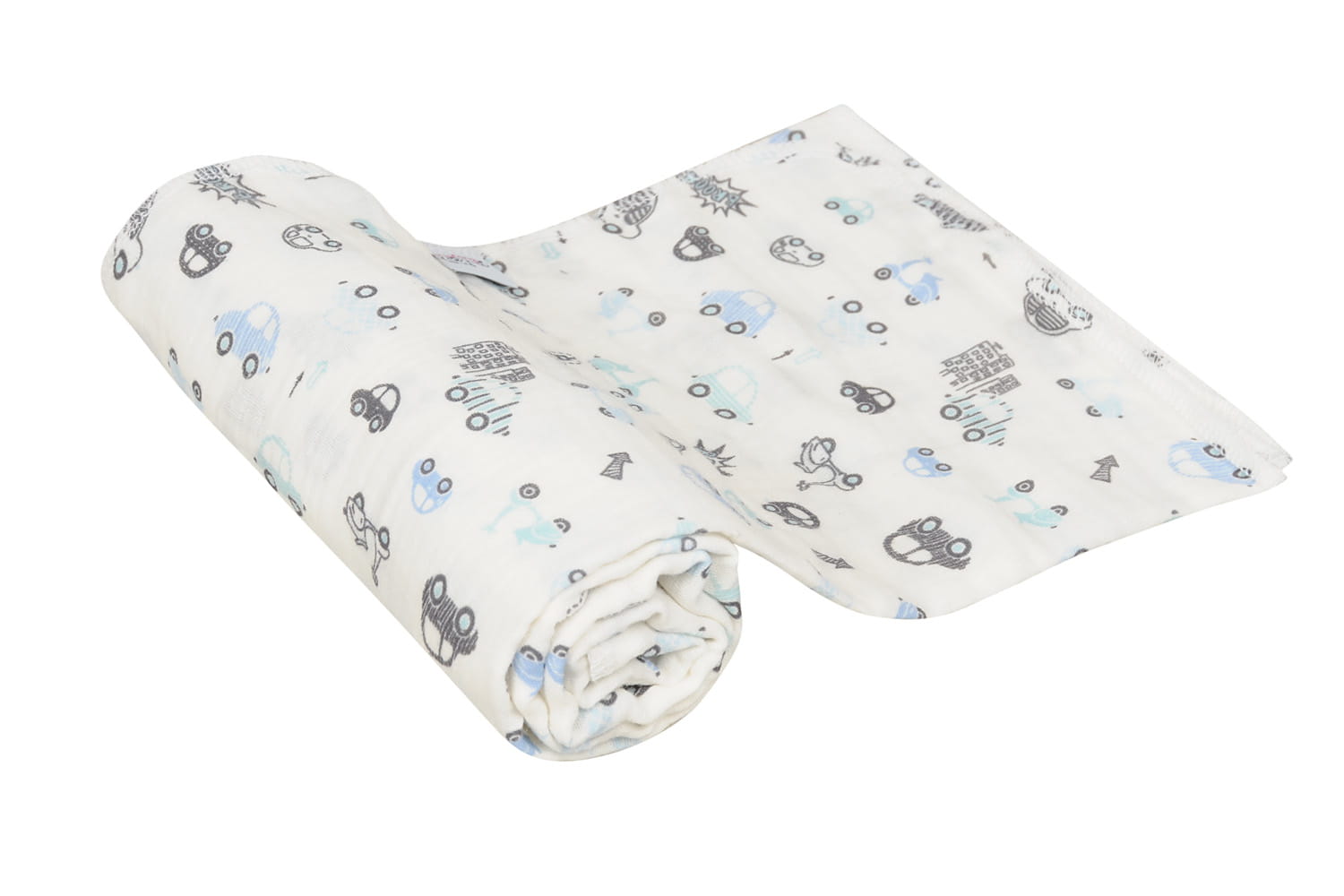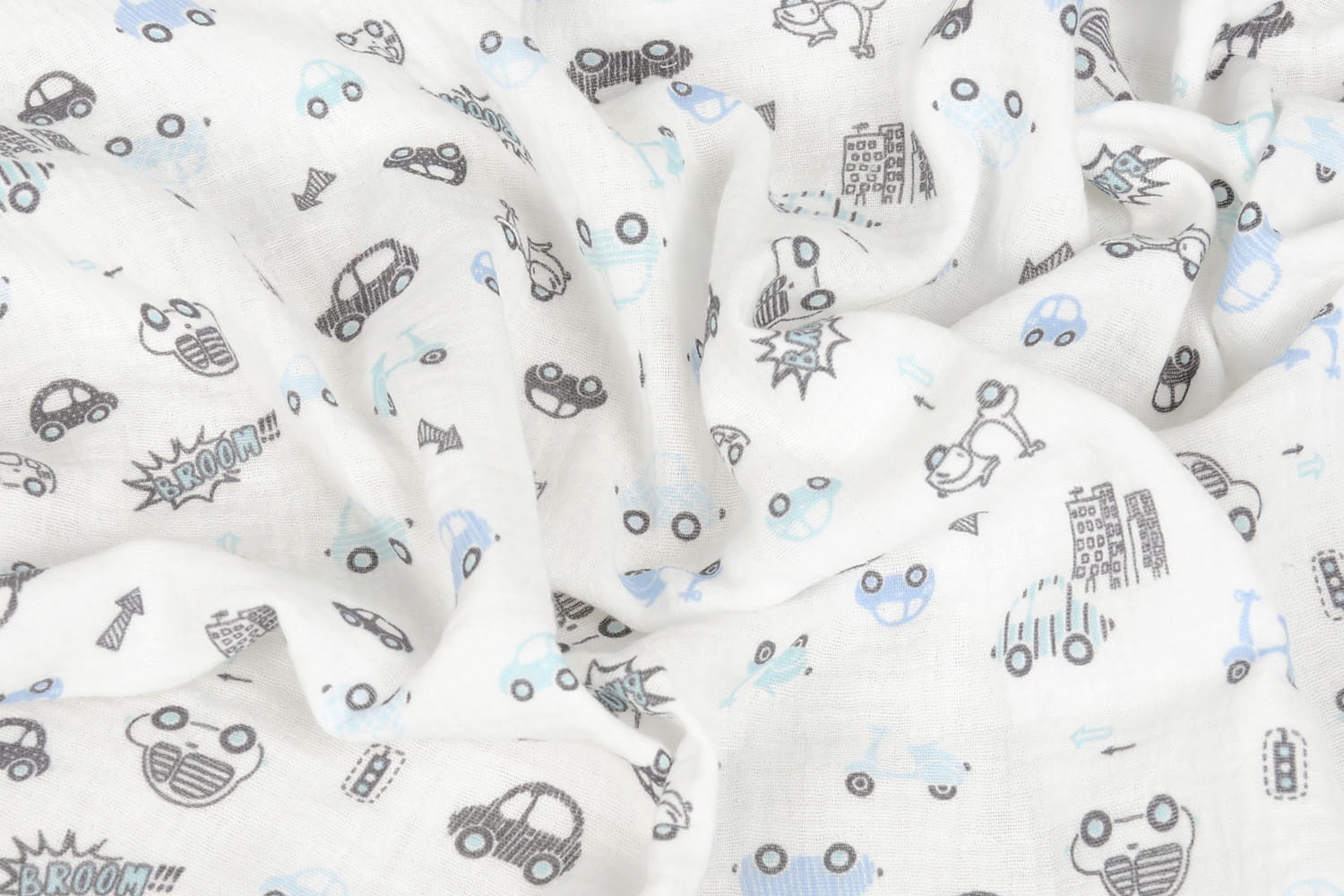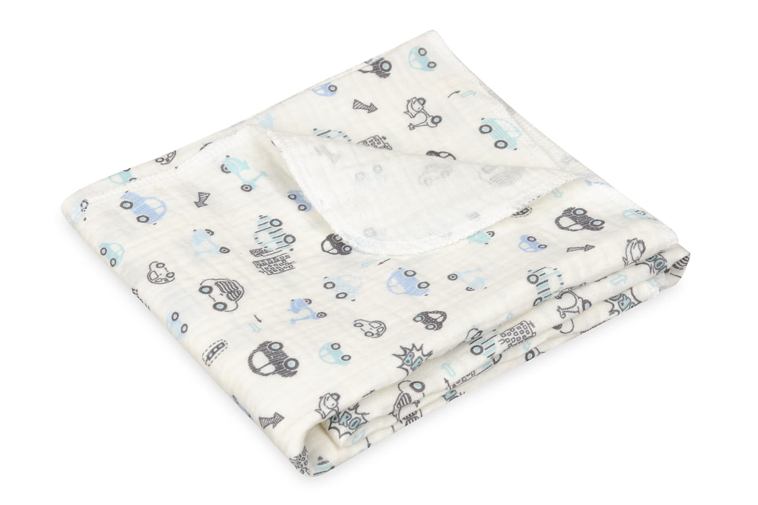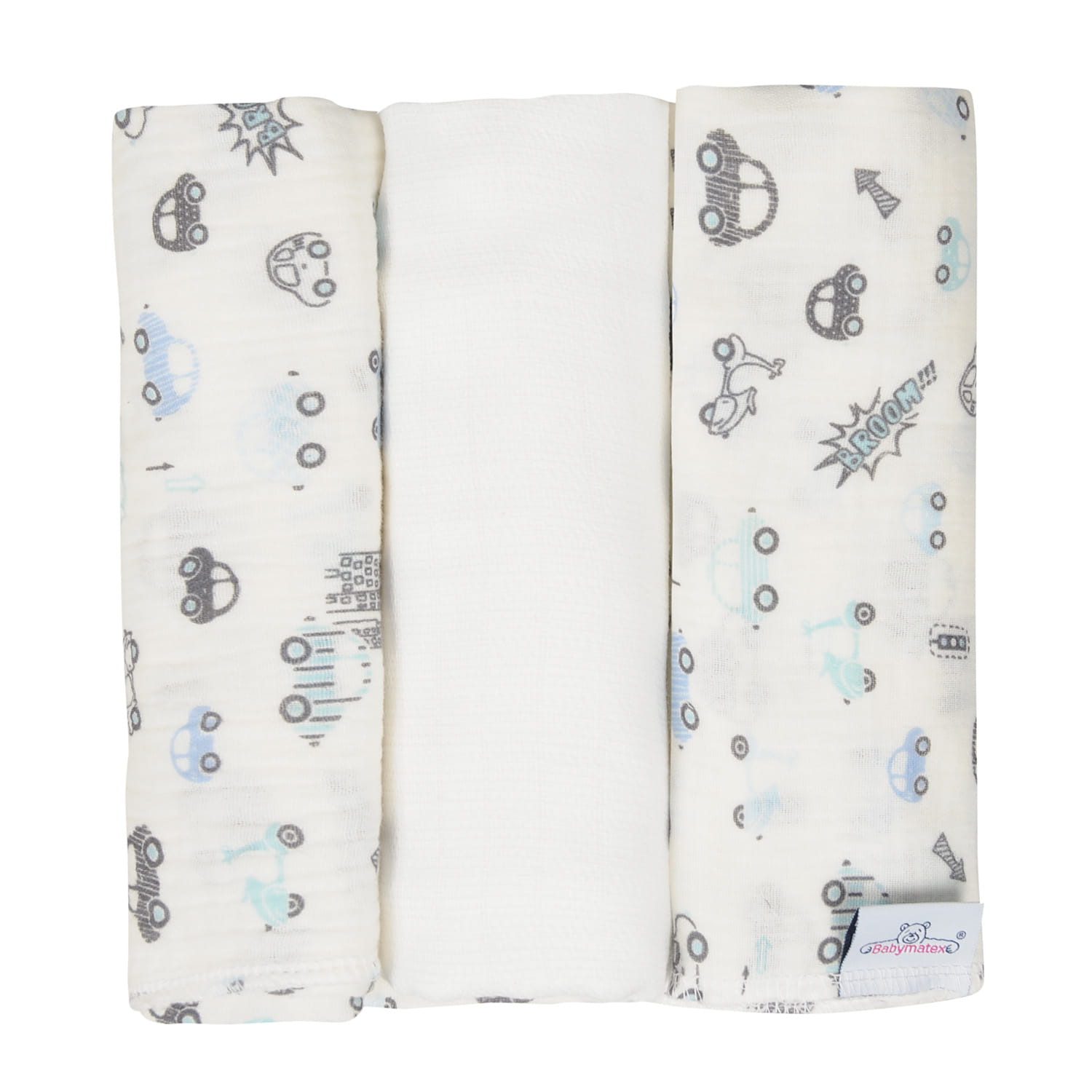 Pielucha MUSLIN DESIGN 3pak 70x80 Biała W Autka