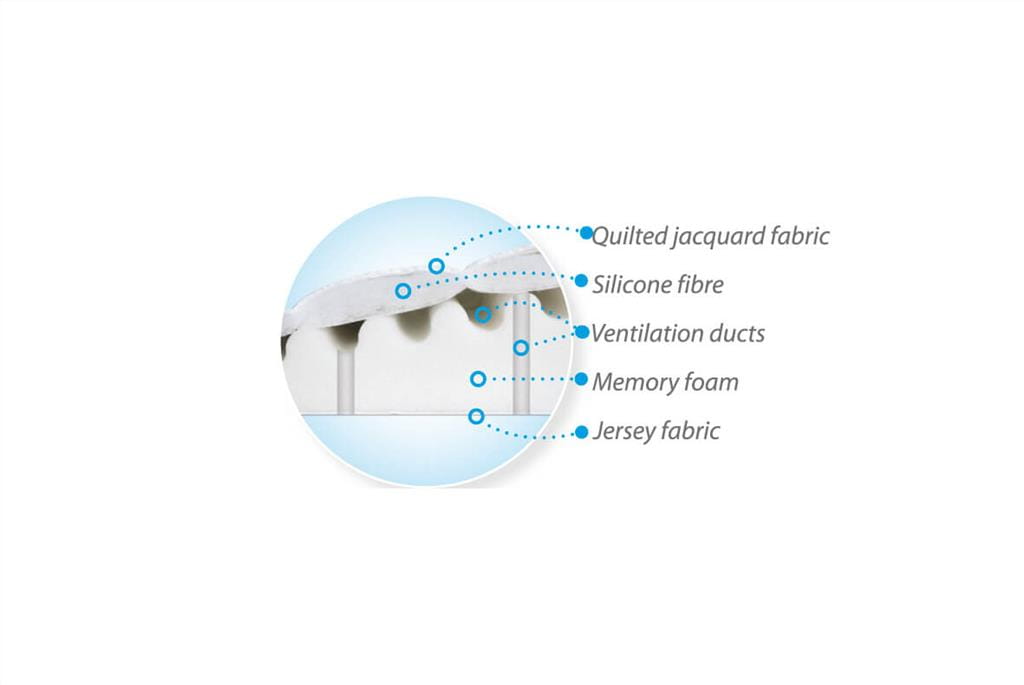 Poduszka dla niemowląt SMART wykonana z pianki termoplastycznej, z wentylacyjnym systemem otworów i kanalików, roz. 60x36 cm z bezpiecznym zamkiem