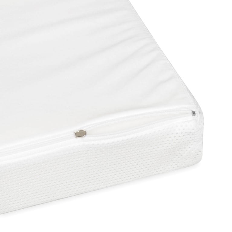 Wewnętrzna warstwa oparta jest na innowacyjnej piancie otwartokomórkowej CALIPORE, która gwarantuje odpowiednie wsparcie i komfort dla maluszka. Zewnętrzna poszewka wykonana jest z przewiewnej dzianiny żakardowej, co zapewnia doskonałą wentylację, eliminując ryzyko pocenia się dziecka oraz zwiększając jego komfort podczas snu. Dodatkowo, druga strona pokrowca wykonana jest z miękkiego jerseyu oraz oddychającej membrany poliuretanowej, która zapobiega przeciekaniu płynów.