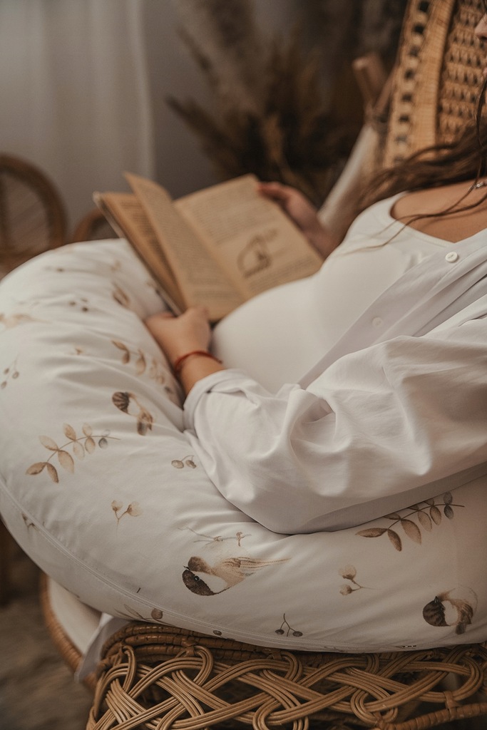 Zapewnij sobie komfort i wsparcie w ciąży oraz podczas karmienia dzięki poduszce pozycjonującej Moon Rogal z motywem liści Botanika. Dzięki przemyślanej konstrukcji poduszka stabilizuje boczną pozycję ciała, odciąża kręgosłup przyszłej mamy oraz ułatwia wygodne i bezpieczne karmienie maluszka.