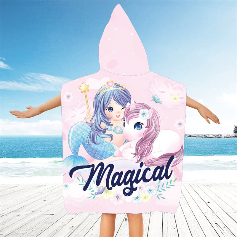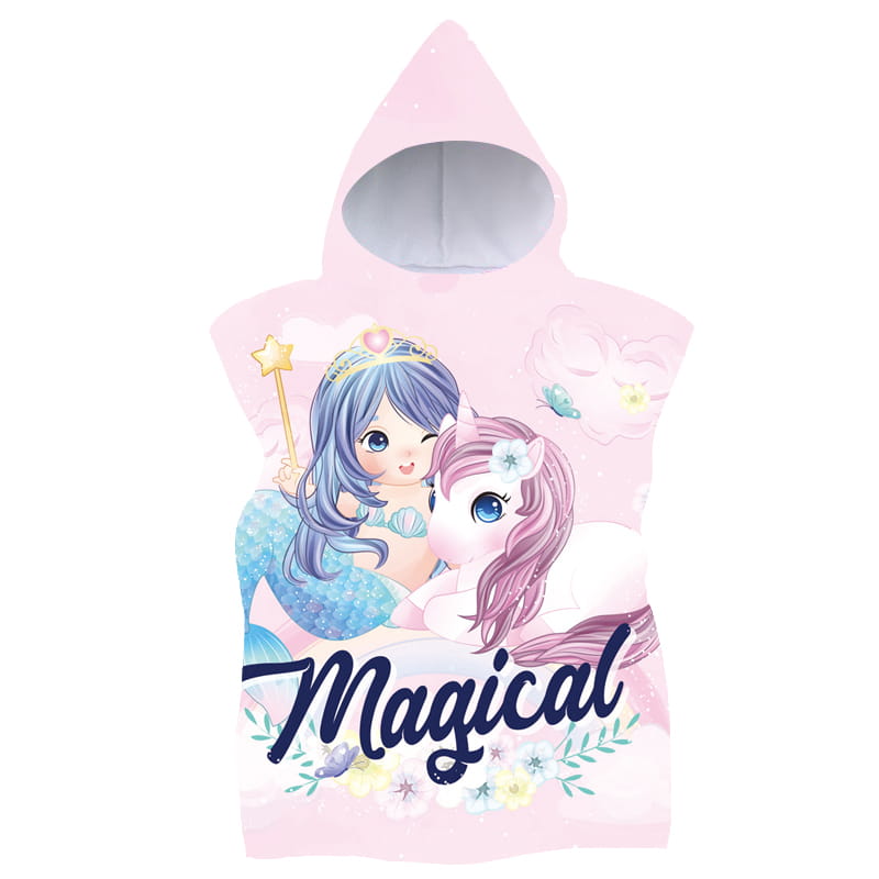 Poncza z kapturem 60X90 Jednorożec i syrenka Ręcznik Wakacyjny