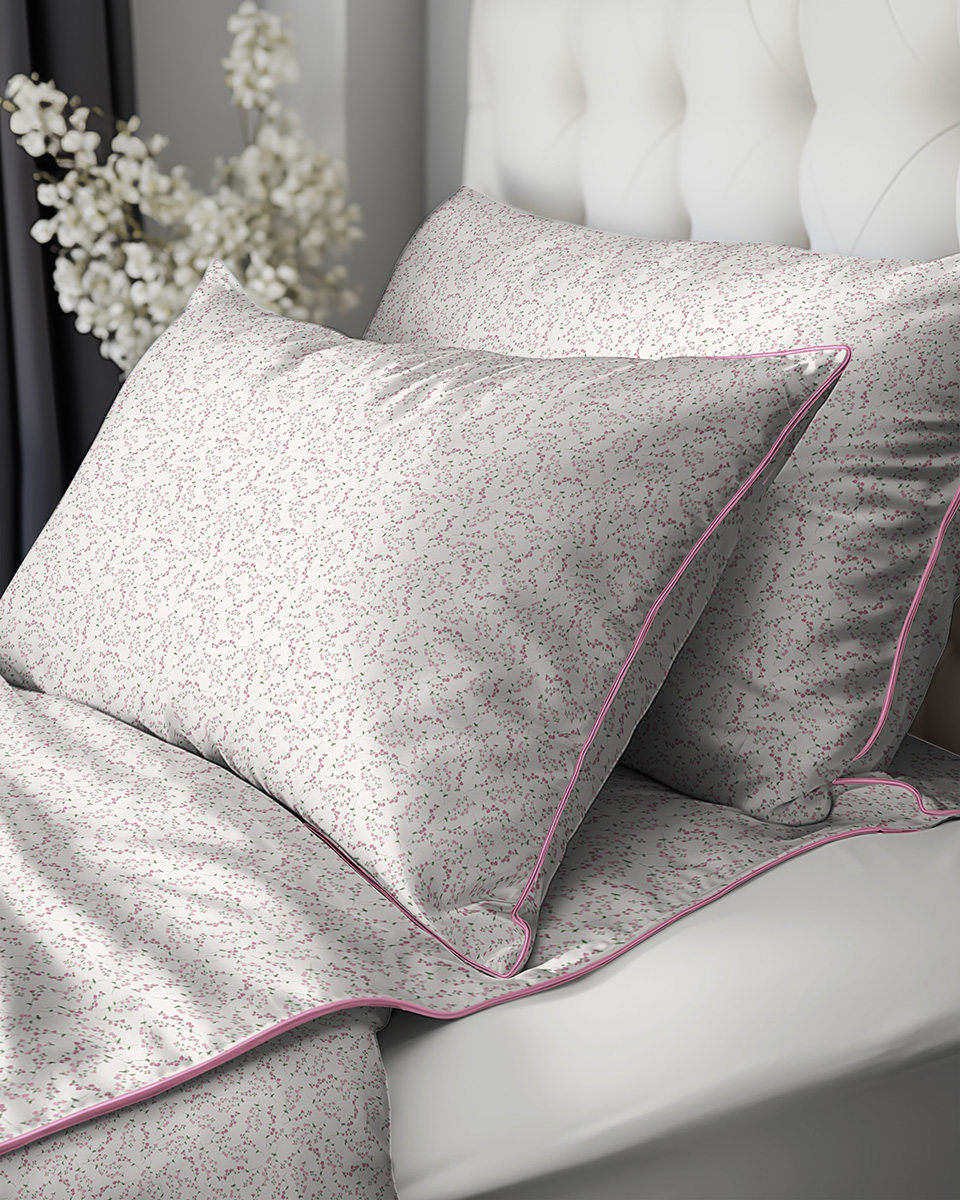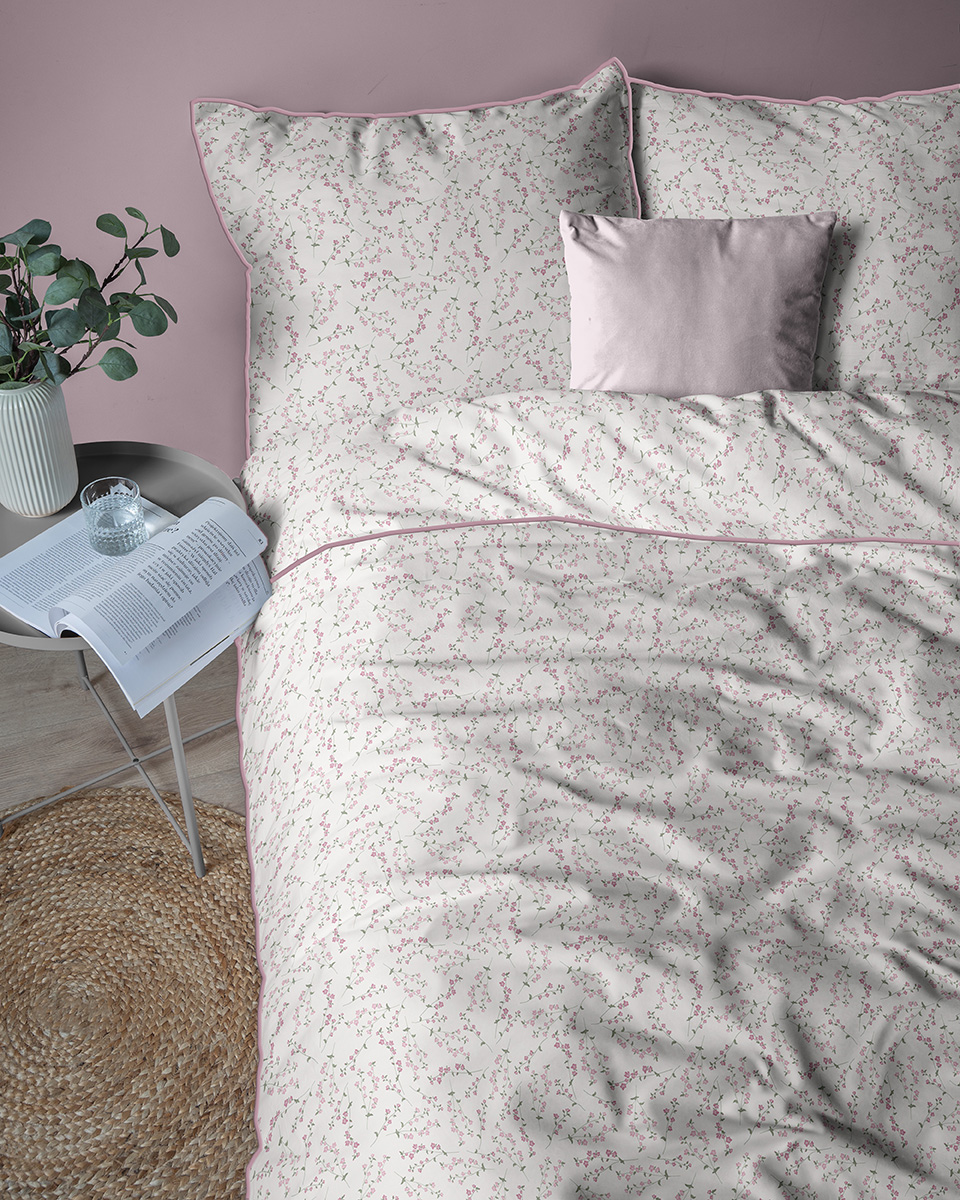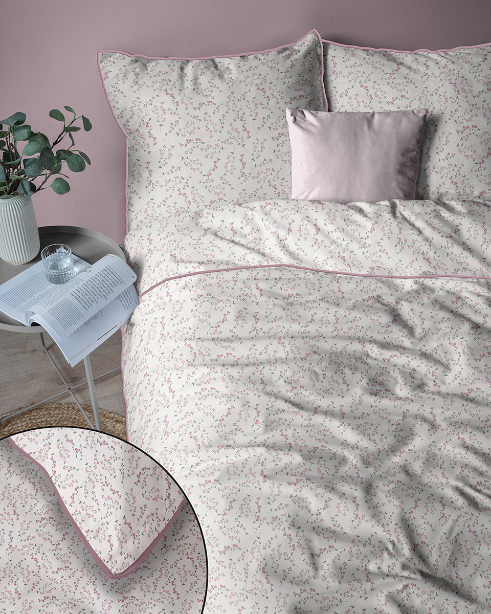 Pościel 160x200 La Perkale Perkal z lamówką Kwietna łączka w odcieniach różowego Bawełna Premium