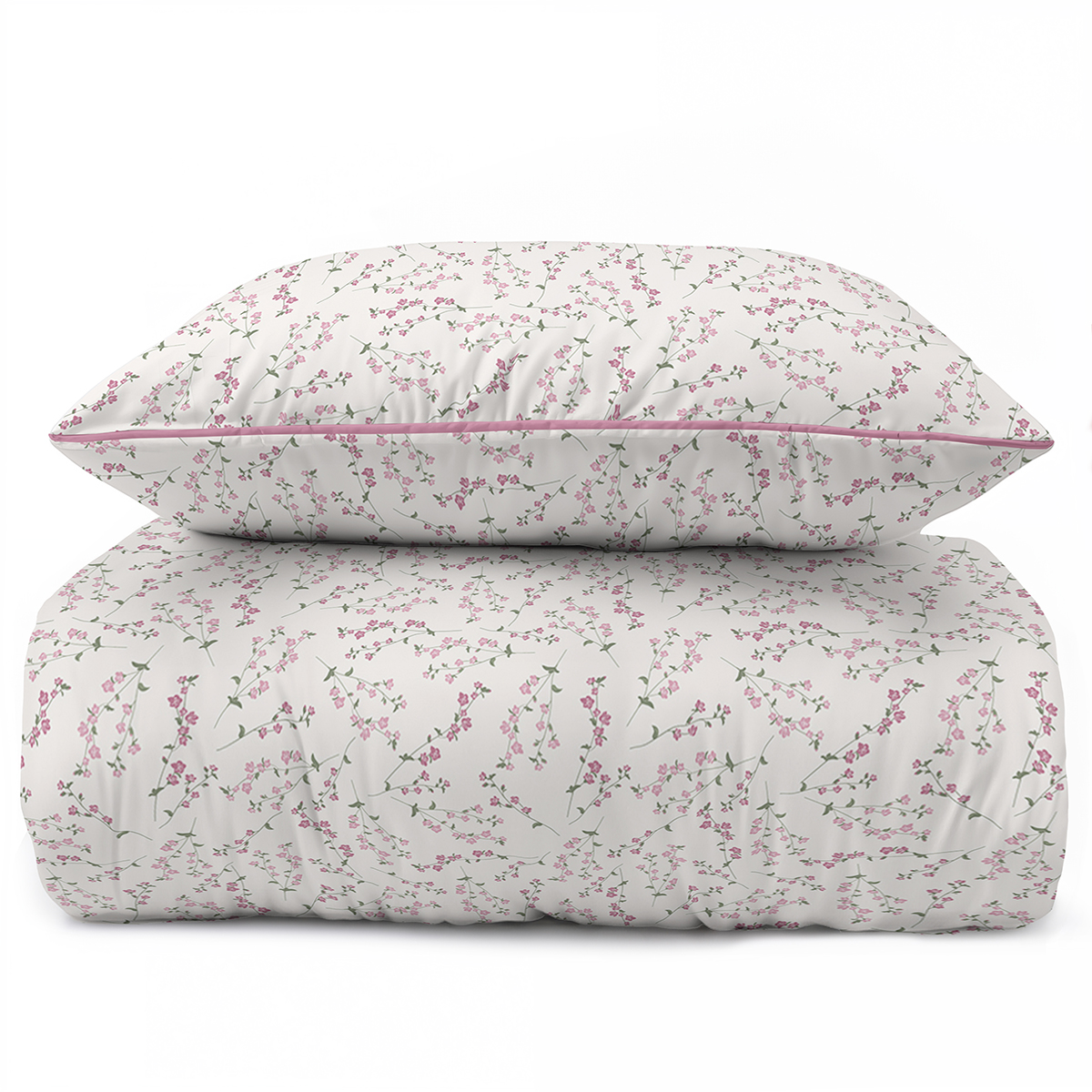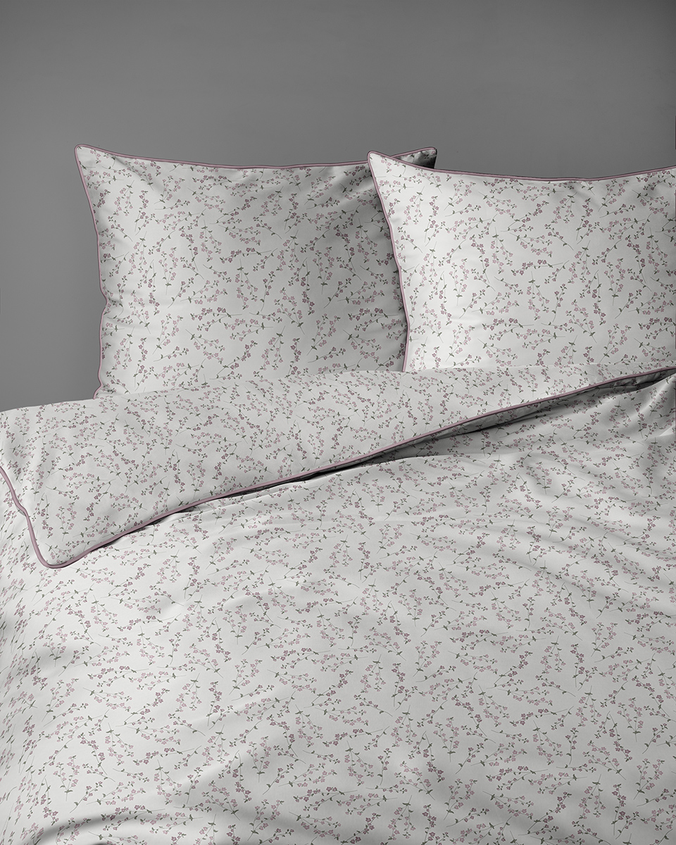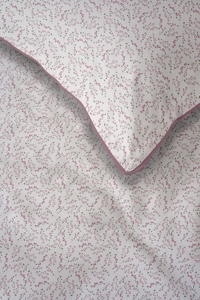 Pościel 160x200 La Perkale Perkal z lamówką Kwietna łączka w odcieniach różowego Bawełna Premium