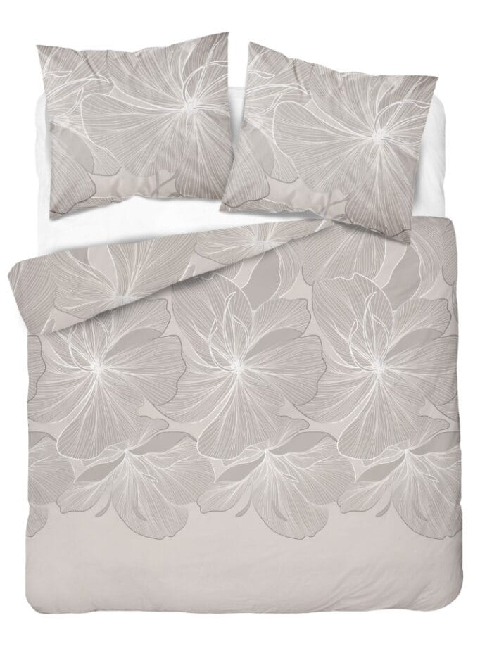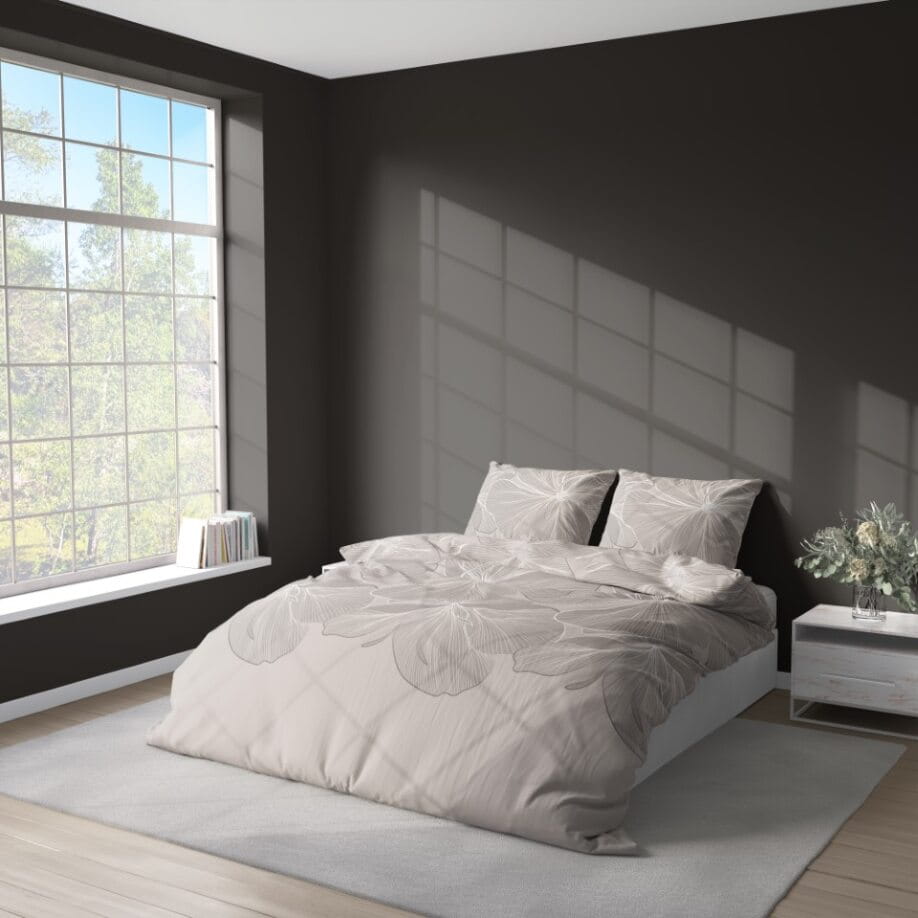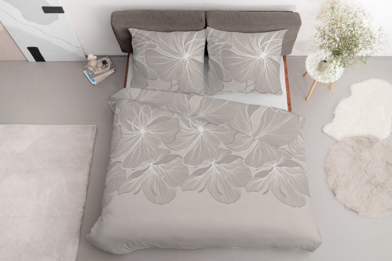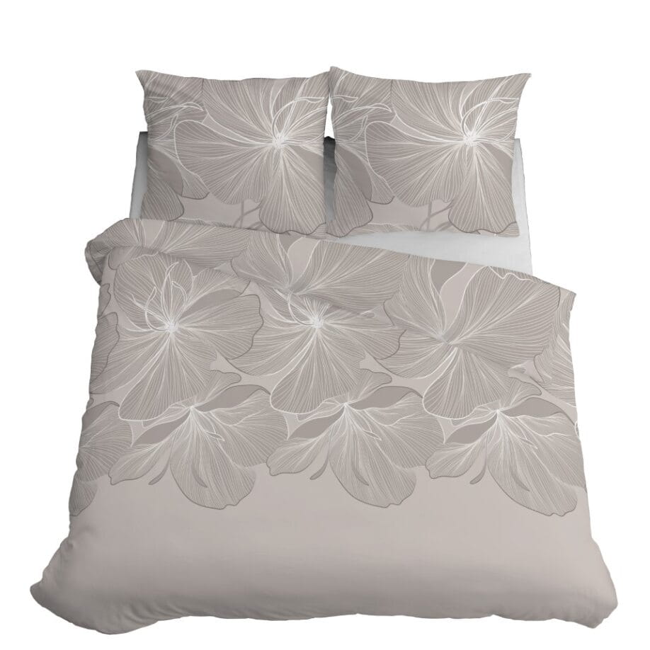 Pościel 220x200 Satynowa Mikrofibra Kwiaty Liście Beżowa