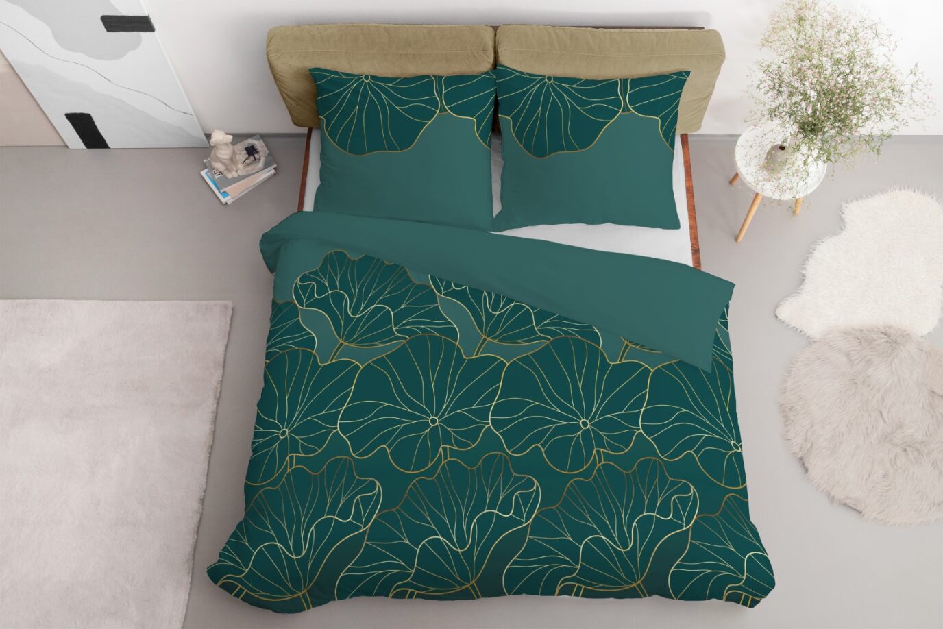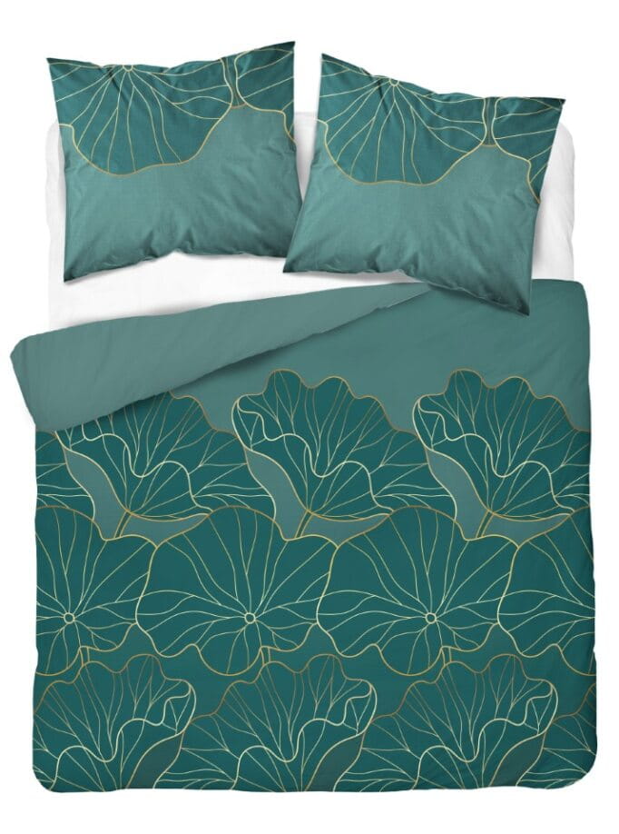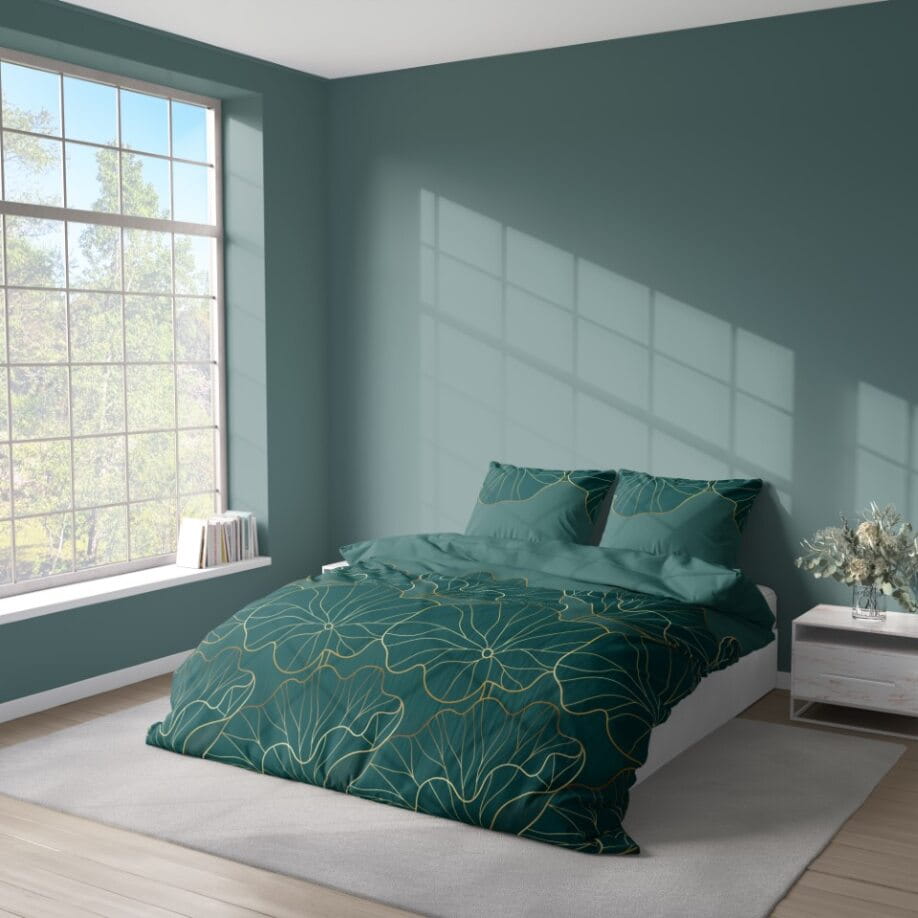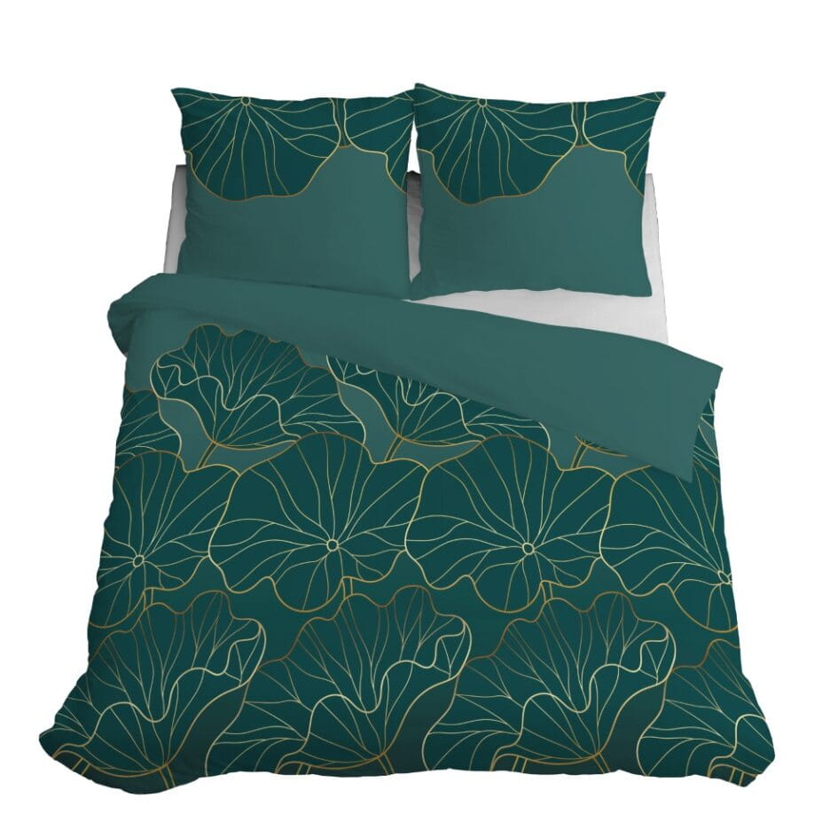 Pościel 220x200 Satynowa Mikrofibra Kwiaty Zielona