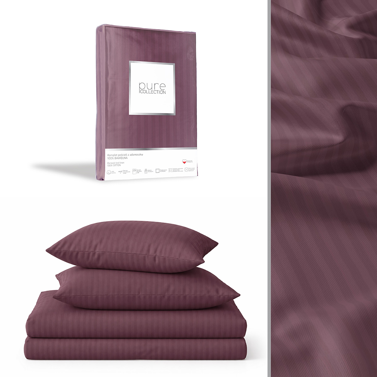 Pościel Adamaszek 140x200 – Gładka Satynowa w Pasy Premium | Róż Antyczny