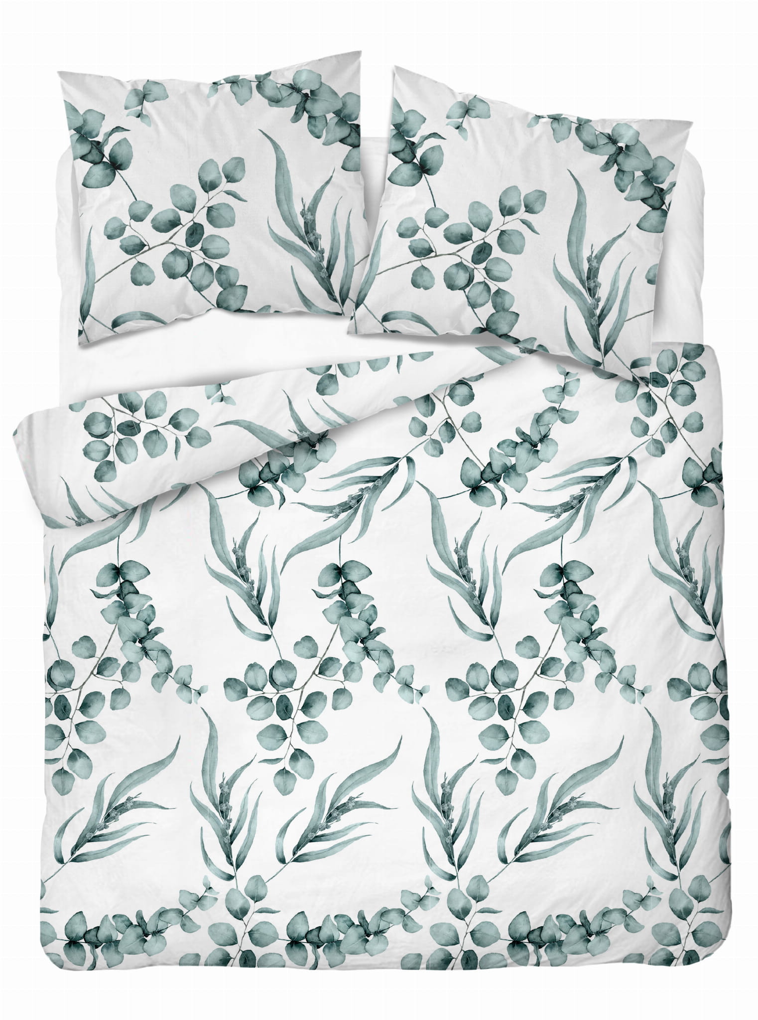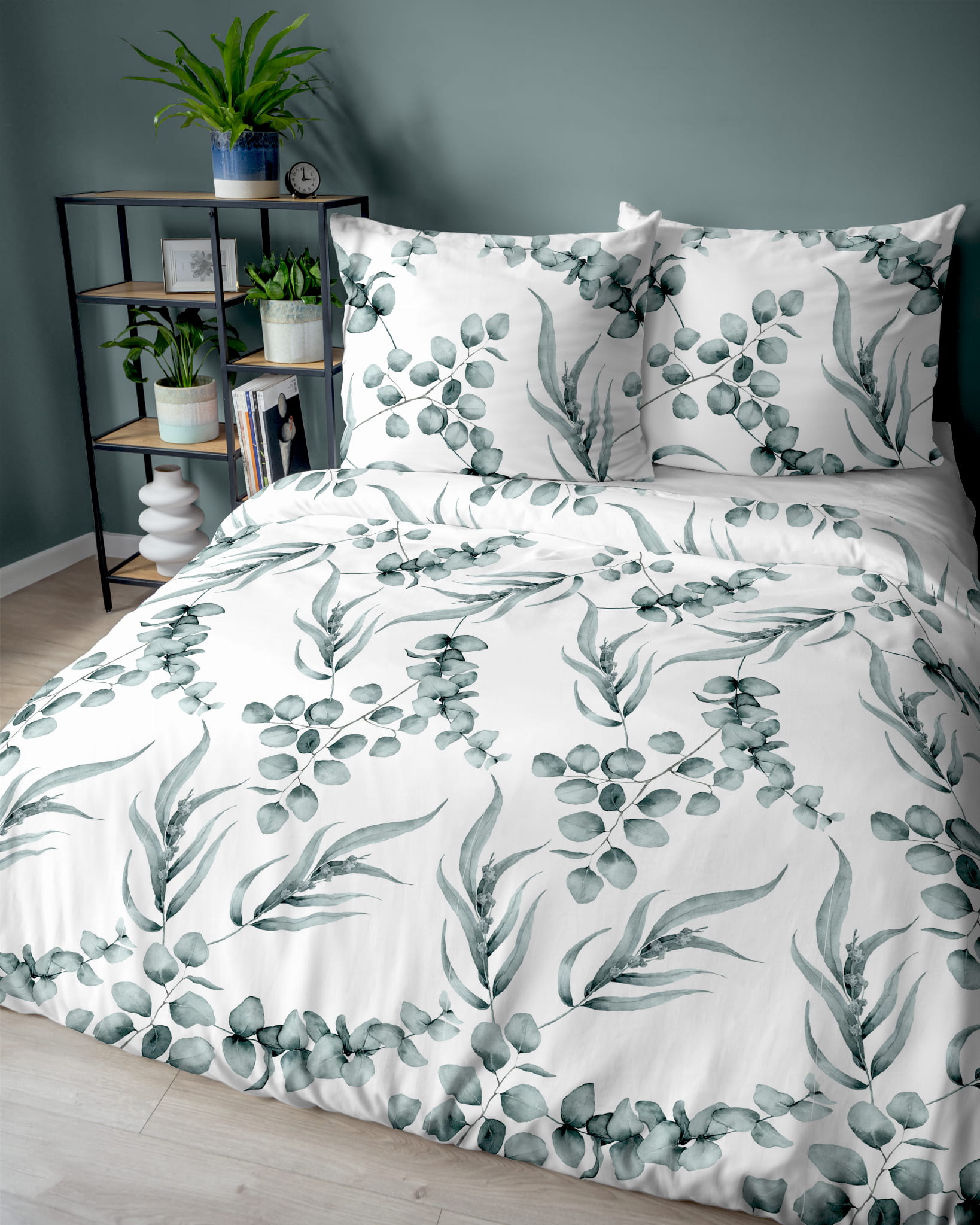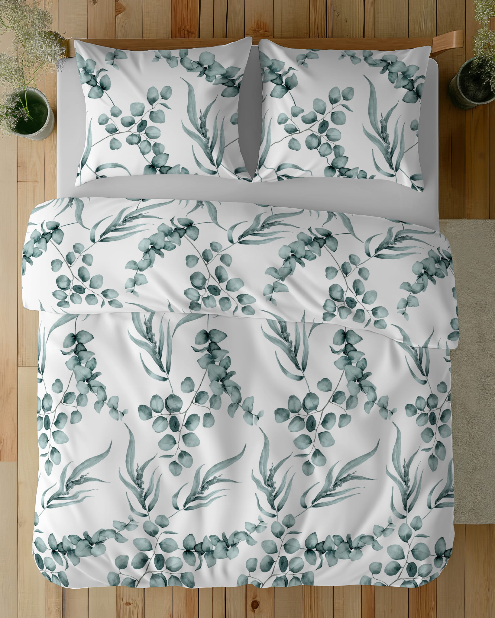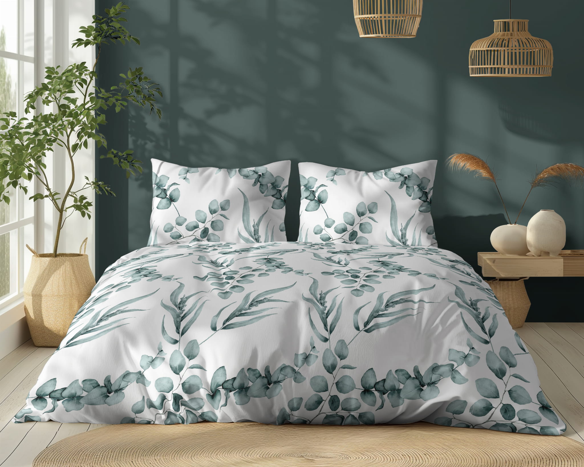 Pościel Bawełna 220x200 Kwiaty Liście Zielona