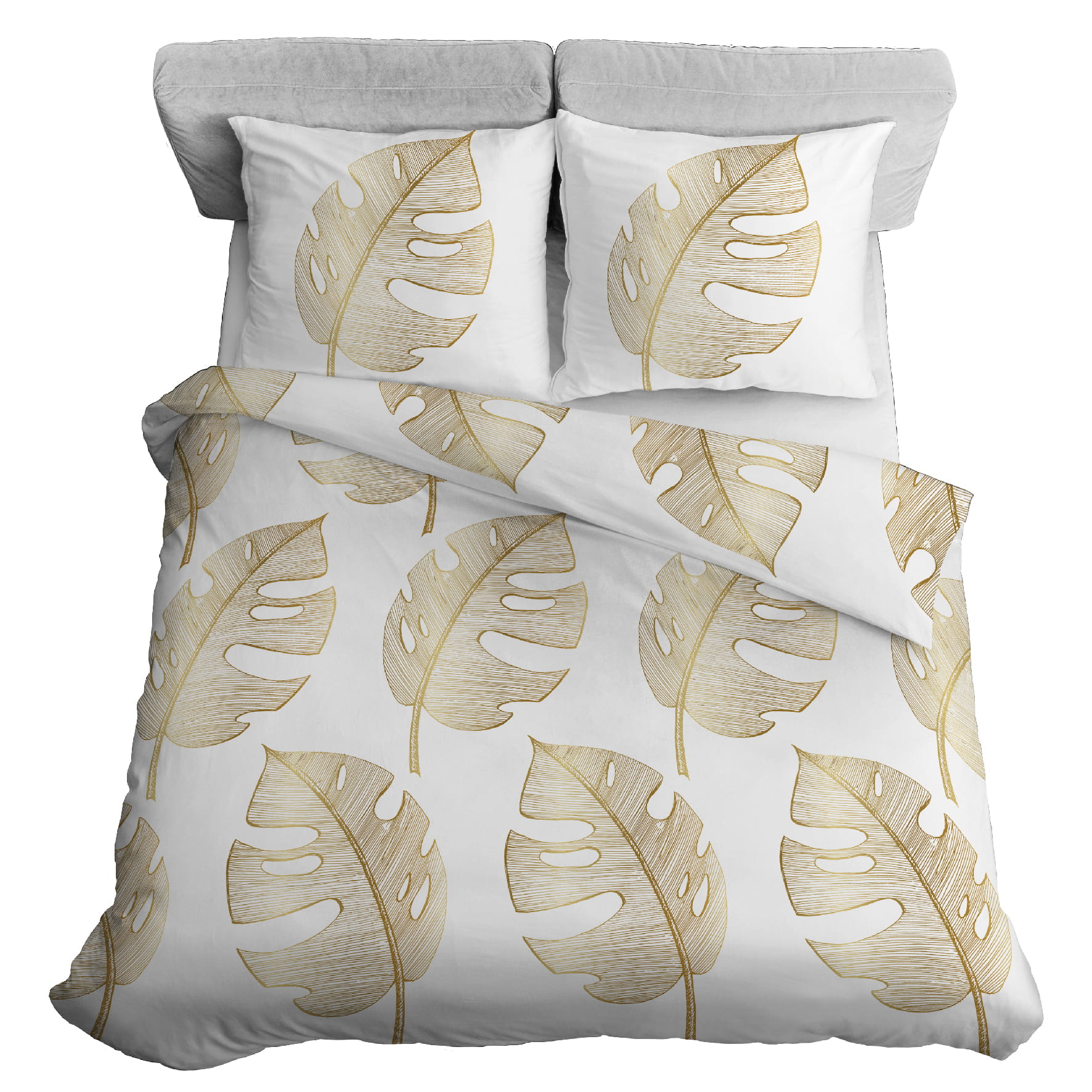 Pościel Bawełna 220x200cm Liście złote na popielu