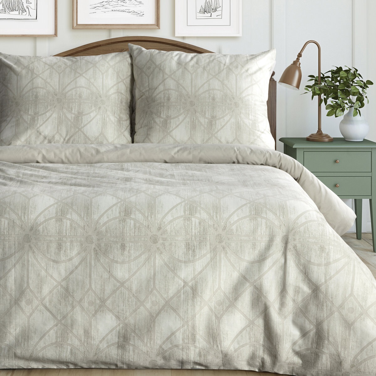 Pościel Bawełniana 140x200 Adell Geometryczna krem / beż
