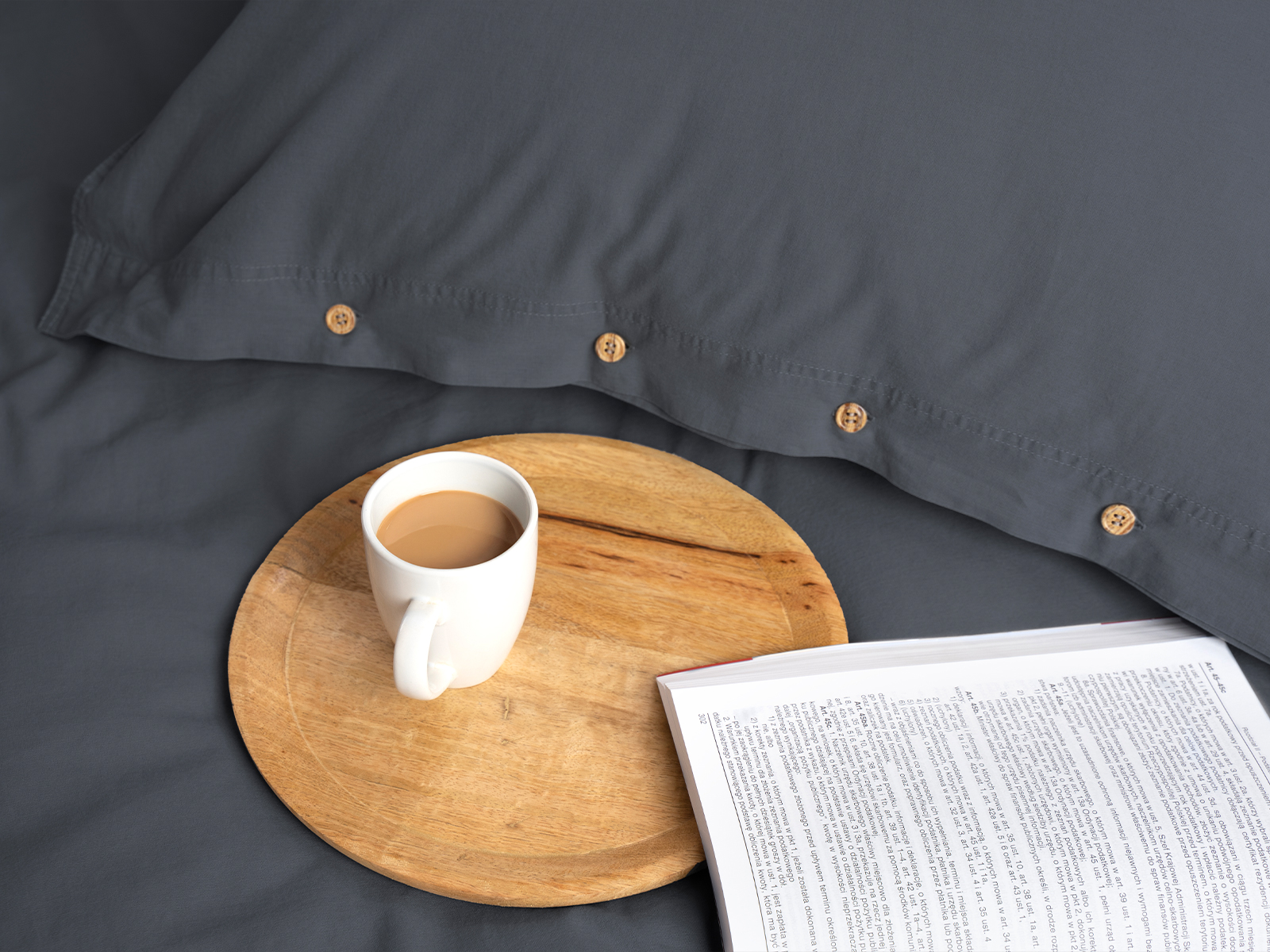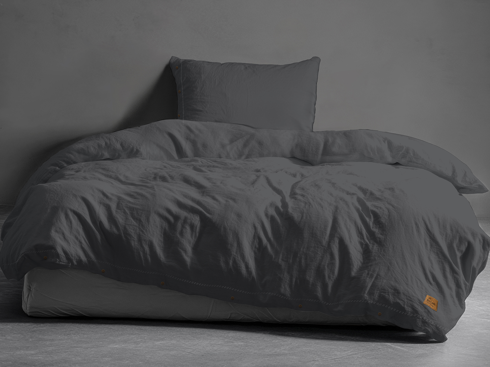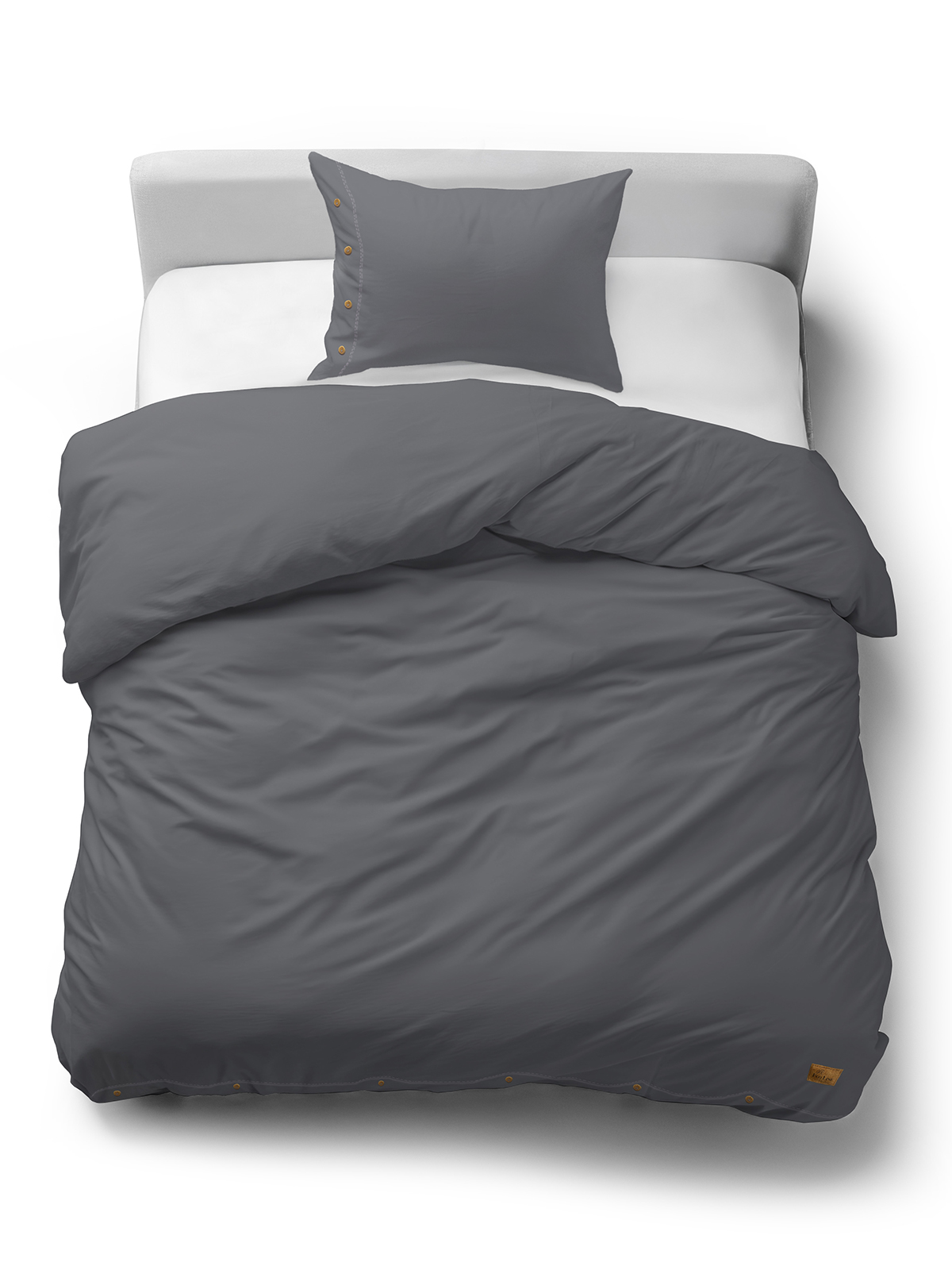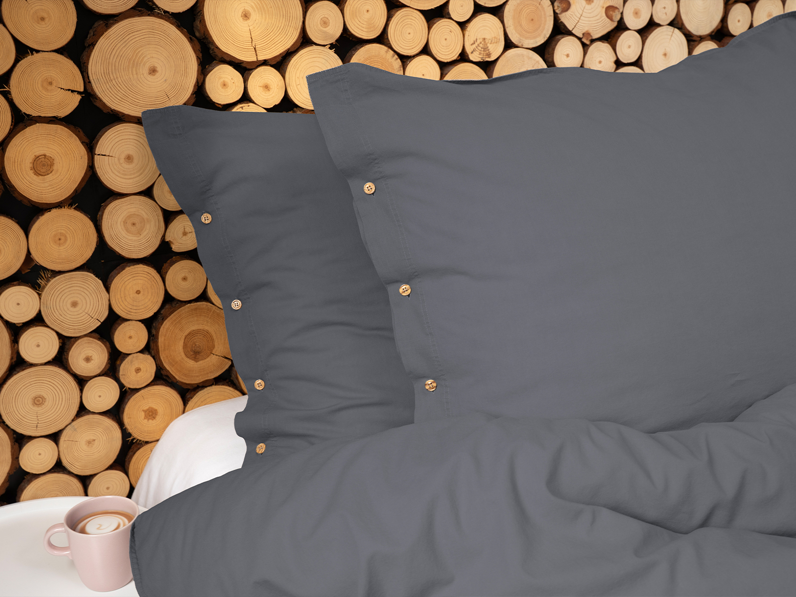 Pościel Bawełniana 140x200 Gładka z ozdobnym guzikiem Premium grafitowa