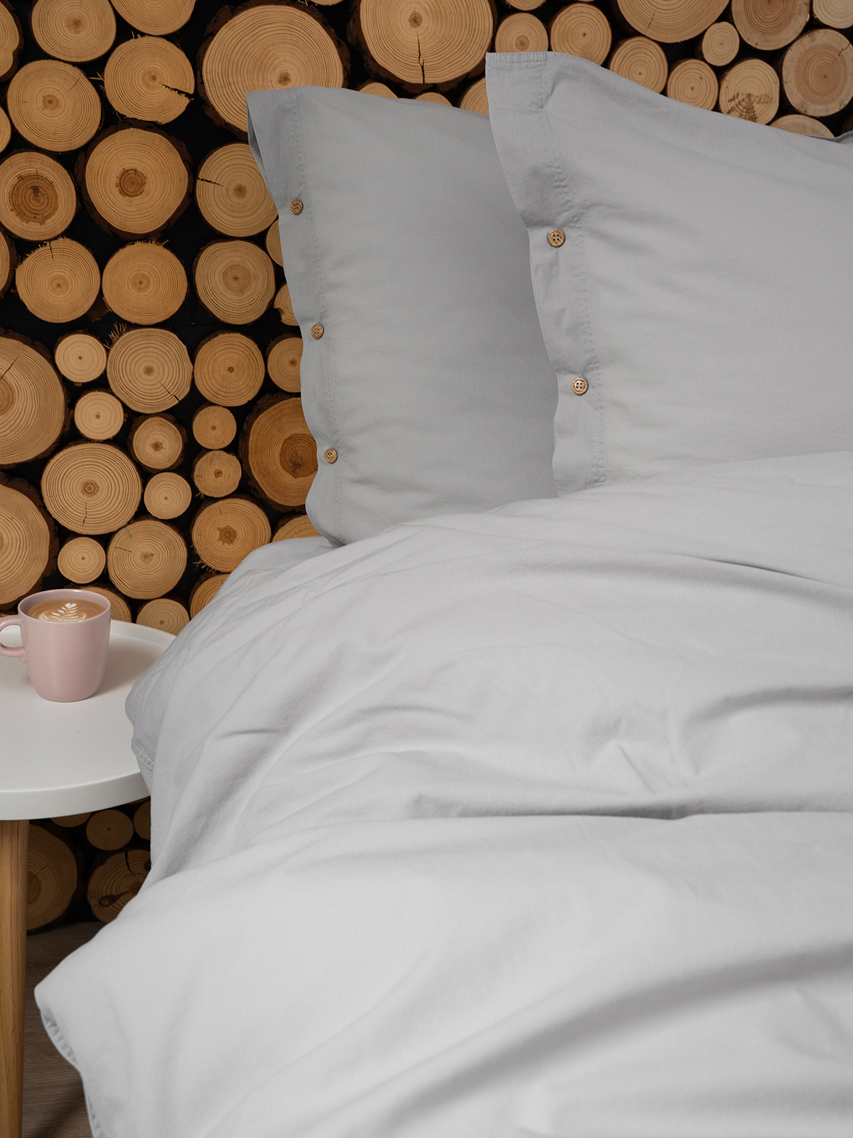 Pościel Bawełniana 140x200 Gładka z ozdobnym guzikiem Premium jasna szara