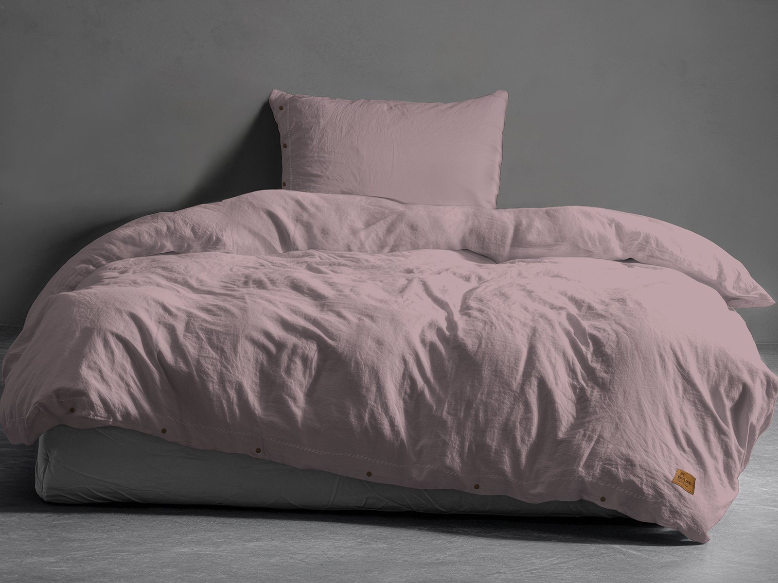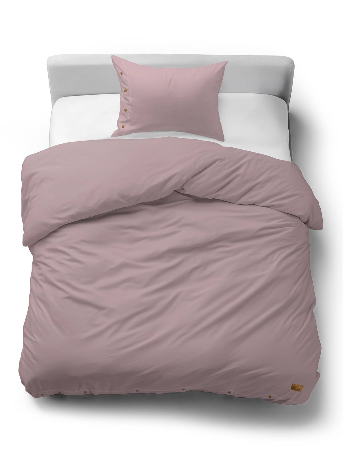 Pościel Bawełniana 140x200 Gładka z ozdobnym guzikiem Premium różowa pudrowa