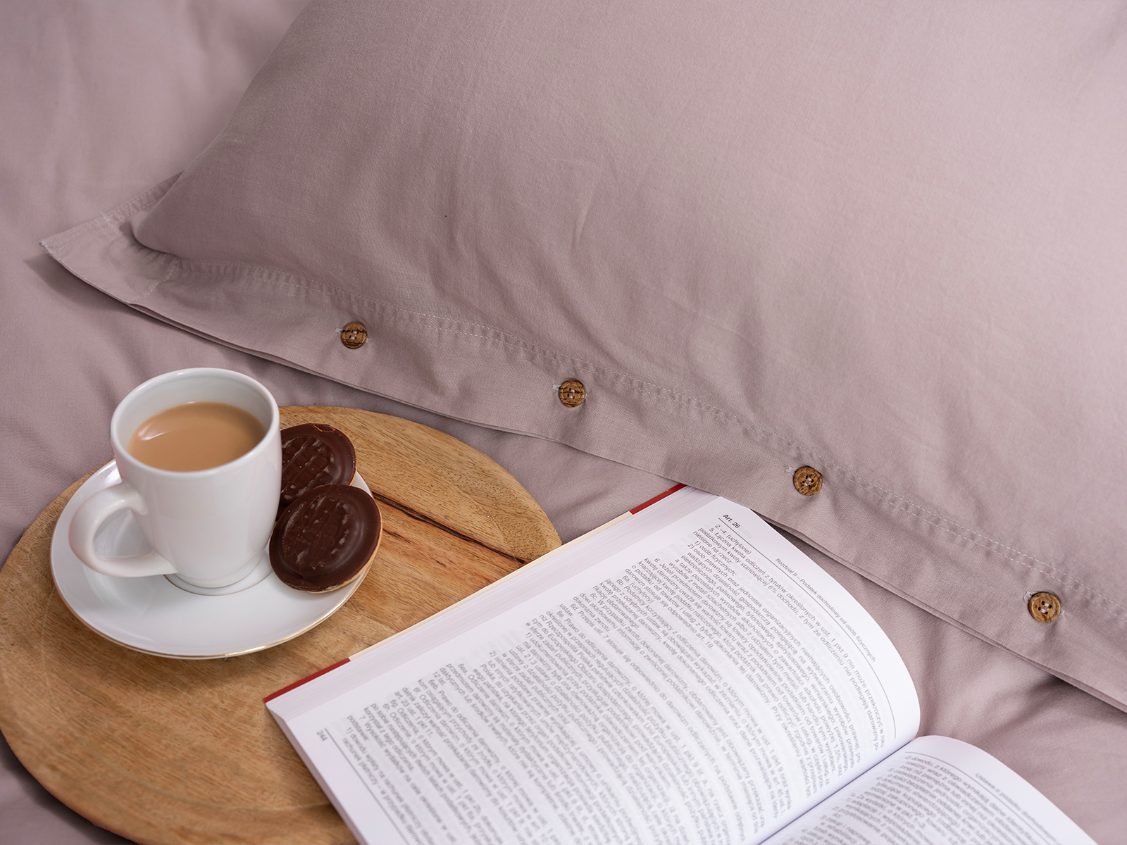 Charakterystycznym elementem kolekcji jest ozdobny guzik – delikatny, ale wyrazisty akcent, który nadaje pościeli indywidualnego charakteru i wyróżnia ją na tle klasycznych modeli. Uzupełnieniem designu jest podwójne przeszycie, dzięki któremu komplet zachowuje idealny kształt oraz elegancki wygląd nawet po wielu praniach.