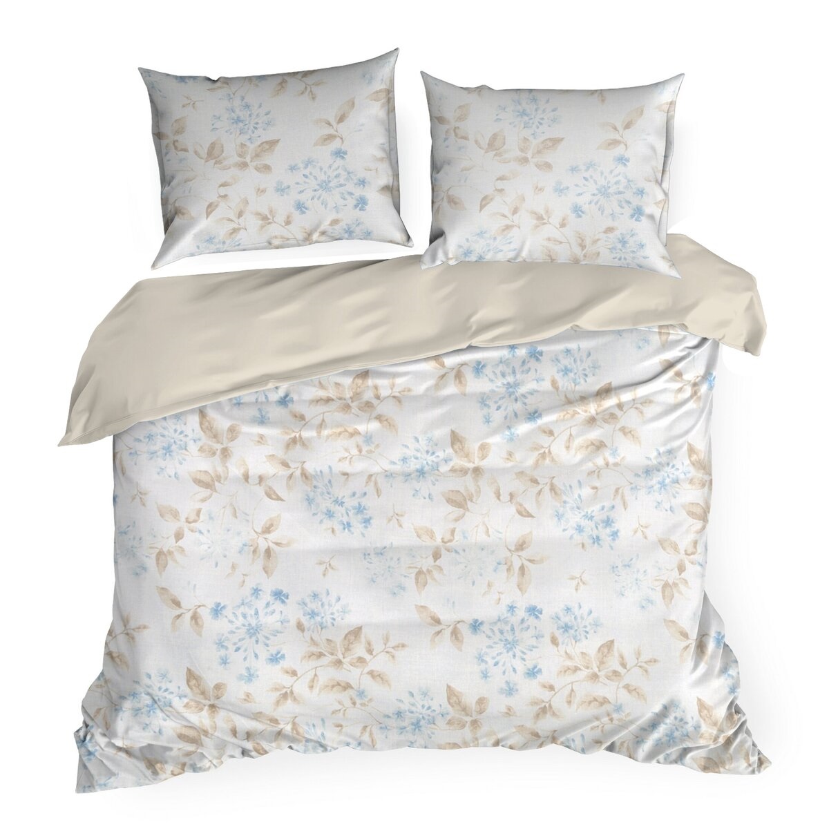 Pościel Bawełniana 140x200 Jasmina Kwiaty krem / niebieski