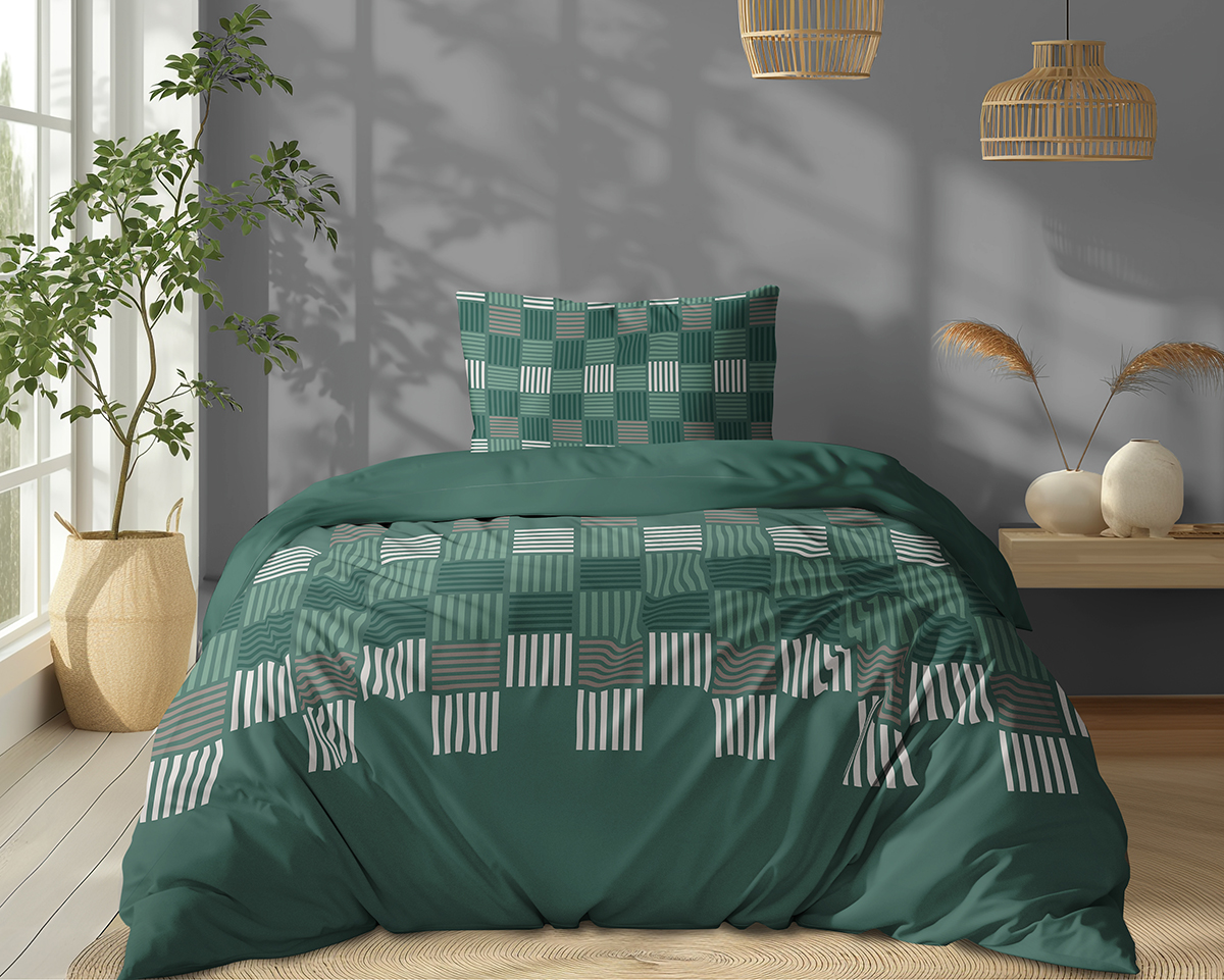 Pościel Bawełniana 140x200cm Geometryczna zielona