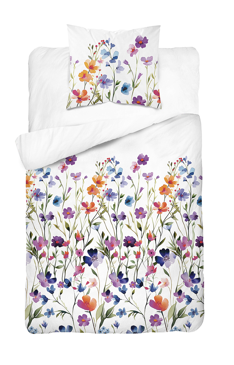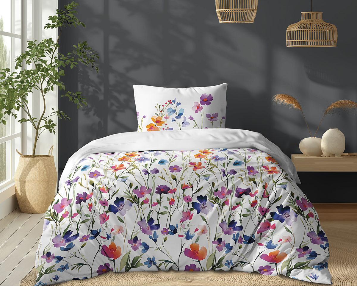 Pościel Bawełniana 140x200cm Kwiaty kolorowe na jasnym tle