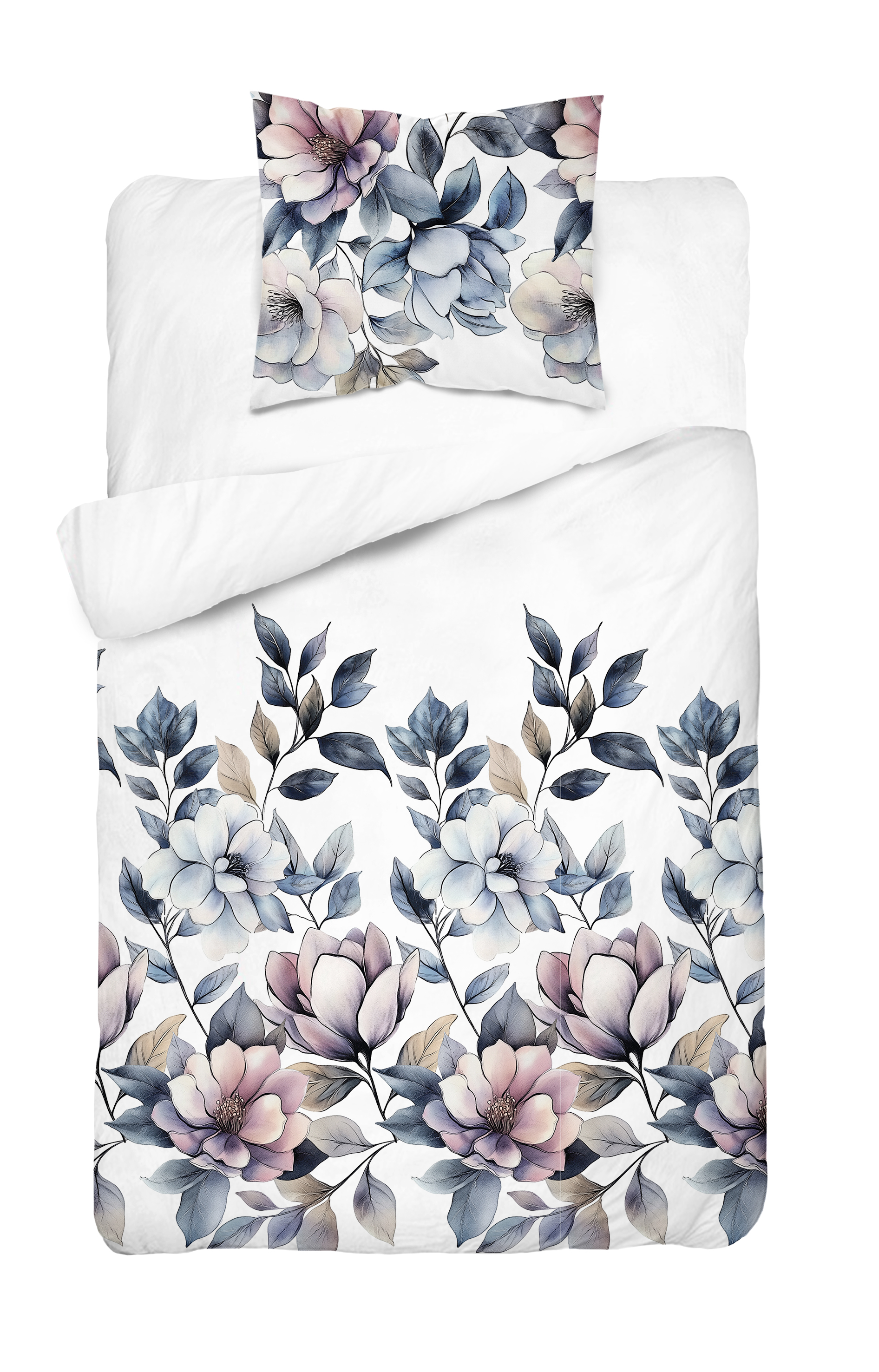 Pościel Bawełniana 140x200cm Kwiaty niebieskie na jasnym tle