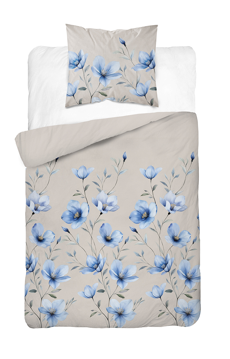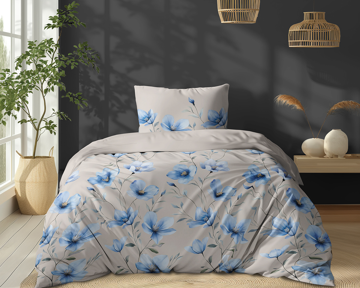 Pościel Bawełniana 140x200cm Kwiaty niebieskie
