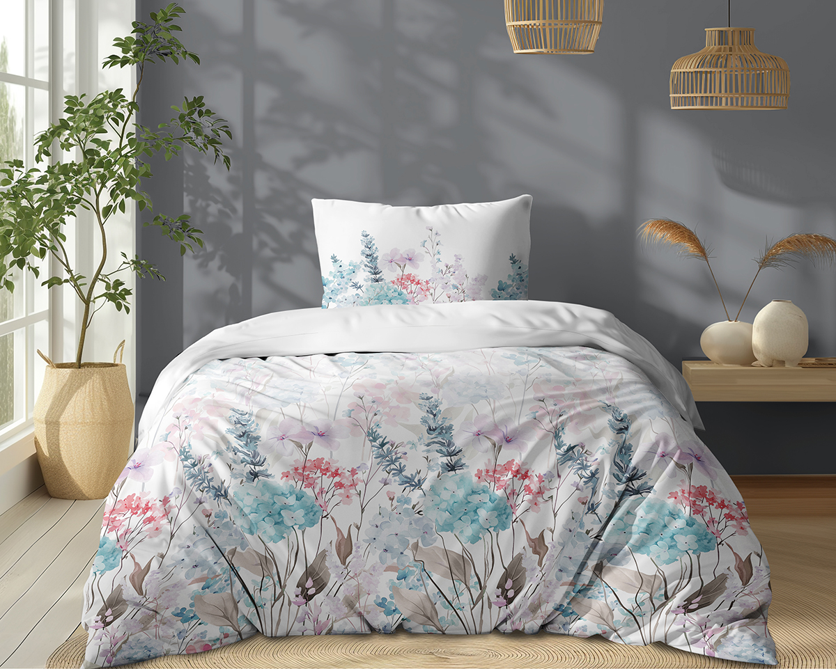 Pościel Bawełniana 140x200cm Kwiaty pastelowe na jasnym tle